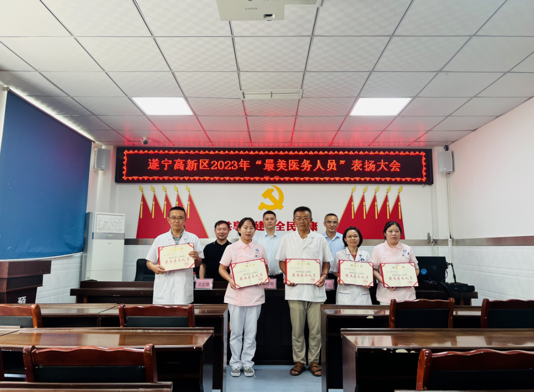 8月17日上午,遂宁高新区管委会副主任陈建明前往保升镇卫生院、西宁街道卫生院为荣获2023年“最美医务人员”的医务工作者颁发荣誉证书。