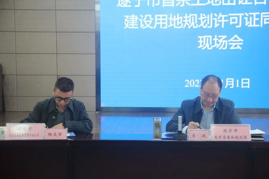让企业点赞的“遂宁速度”,来自全省首例“拿地即领证”签约仪式的现场。当天,市自然资源和规划局和遂宁市天盛高新投资有限责任公司签订《国有土地使用权出让合同》,并同步核发《建设用地规划许可证》。