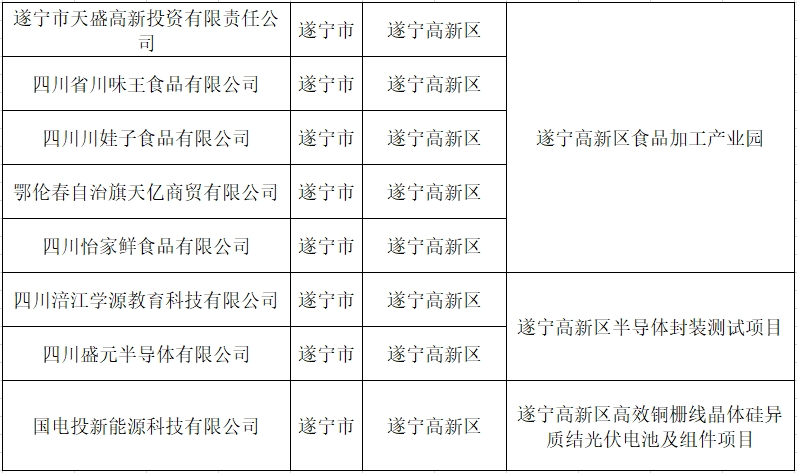 遂宁市的高精密结构件及总部基地投资建设项目、四川绿色油气化工产业园项目(一期)、遂宁高新区食品加工产业园等23个项目上榜,项目总投资664.2亿元,2025年计划投资201.1亿元、同比增长27.2%。