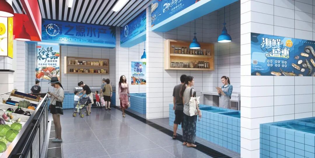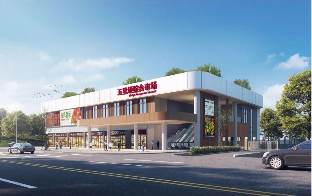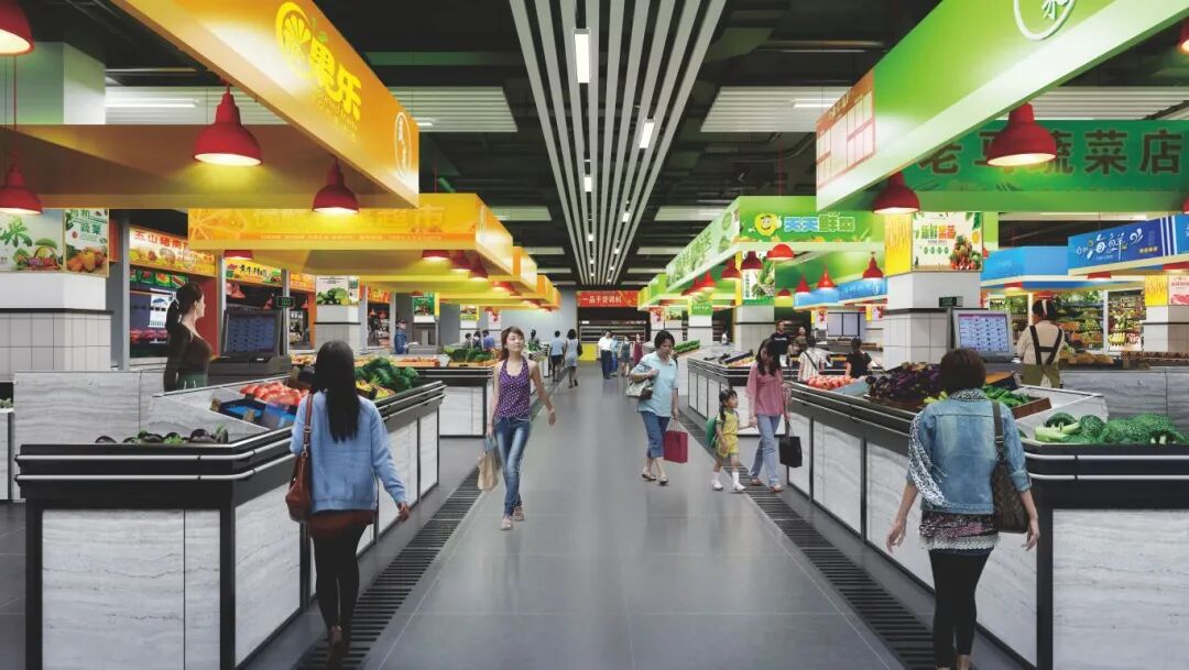 在外观与环境打造上,摒弃传统农贸市场“脏乱差”印象,采用简约大气的建筑风格,内部重点优化通风采光设计,营造整洁明亮的购物环境,让“逛菜场”成为轻松舒适的生活体验。