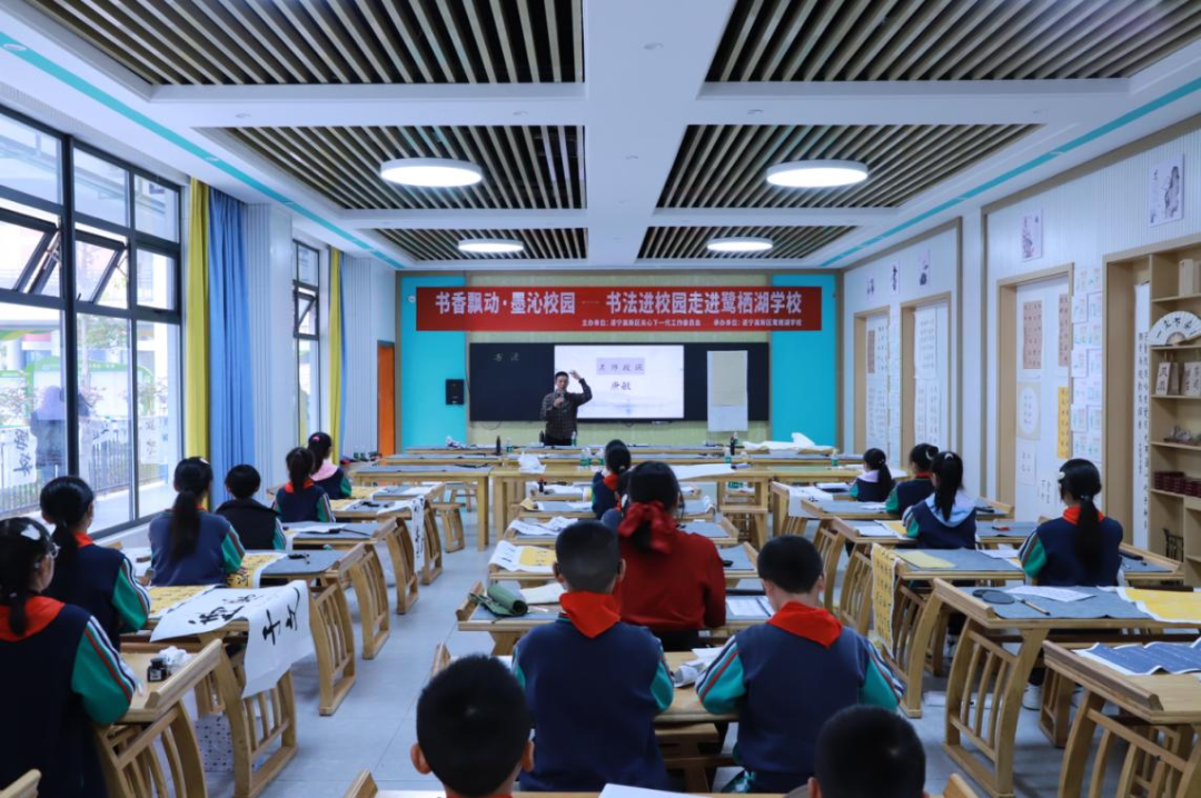 活动伊始,与会领导和嘉宾在鹭栖湖学校校长引导下,参观了校园文化和师生们的书法艺术作品。活动中,来自遂宁市硬笔书法协会的书法家们现场书写并向学校捐赠书法作品,还为在场学生进行书写练习指导,鼓励他们巧用笔墨,在一笔一划中传承好中华优秀传统文化。