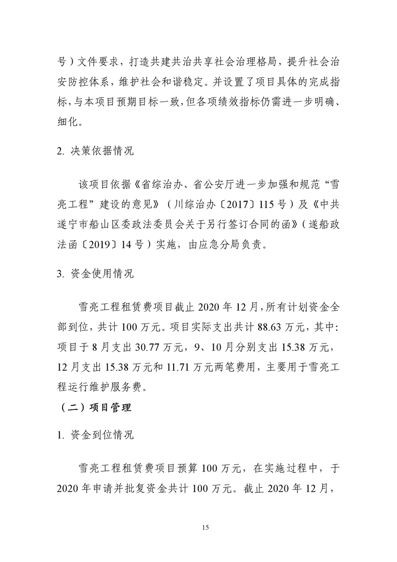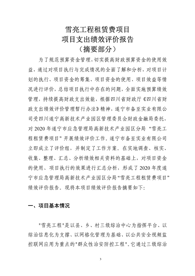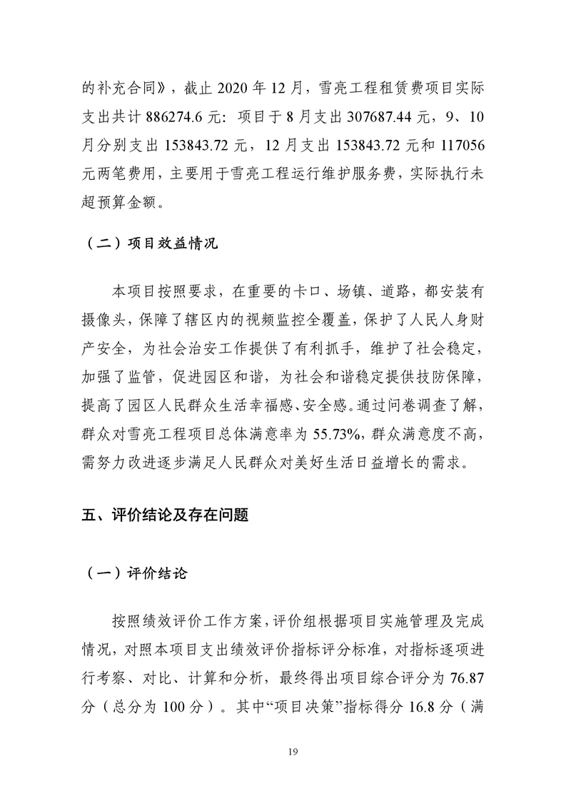 雪亮工程租赁费项目项目支出绩效评价报告