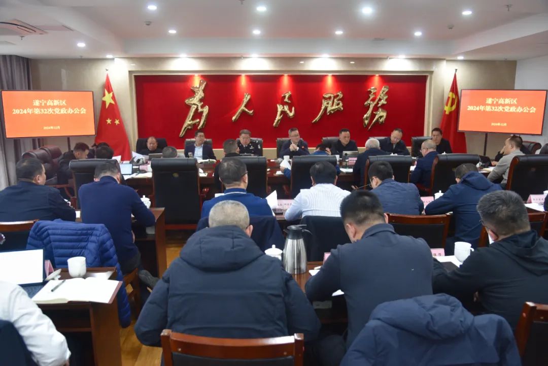 12月20日,遂宁高新区召开2024年第32次党政办公会,传达学习习近平总书记近期重要讲话精神,中央经济工作会议、省委常委会会议、遂宁市县级主要负责同志学习贯彻党的二十届三中全会精神读书班等中央和省、市会议精神,研究园区贯彻意见,安排部署下步重点工作。遂宁高新区党工委副书记、管委会主任唐统主持会议并讲话。园区领导黄俊宁、赵武军、谭勇、冉茂连、李忠海、徐毅参加会议。