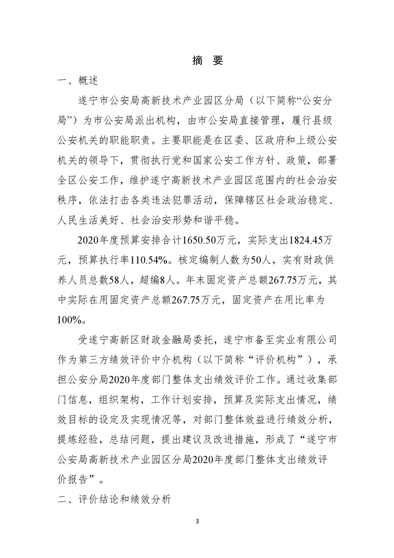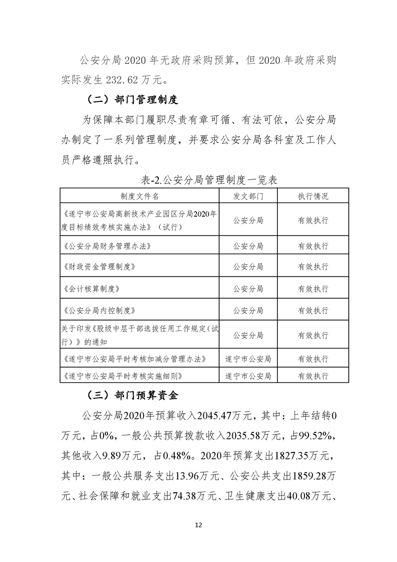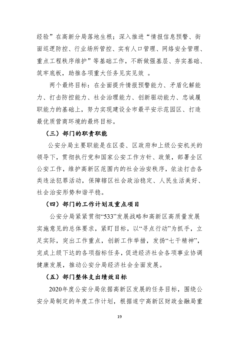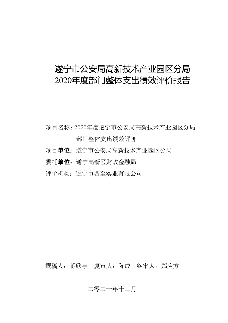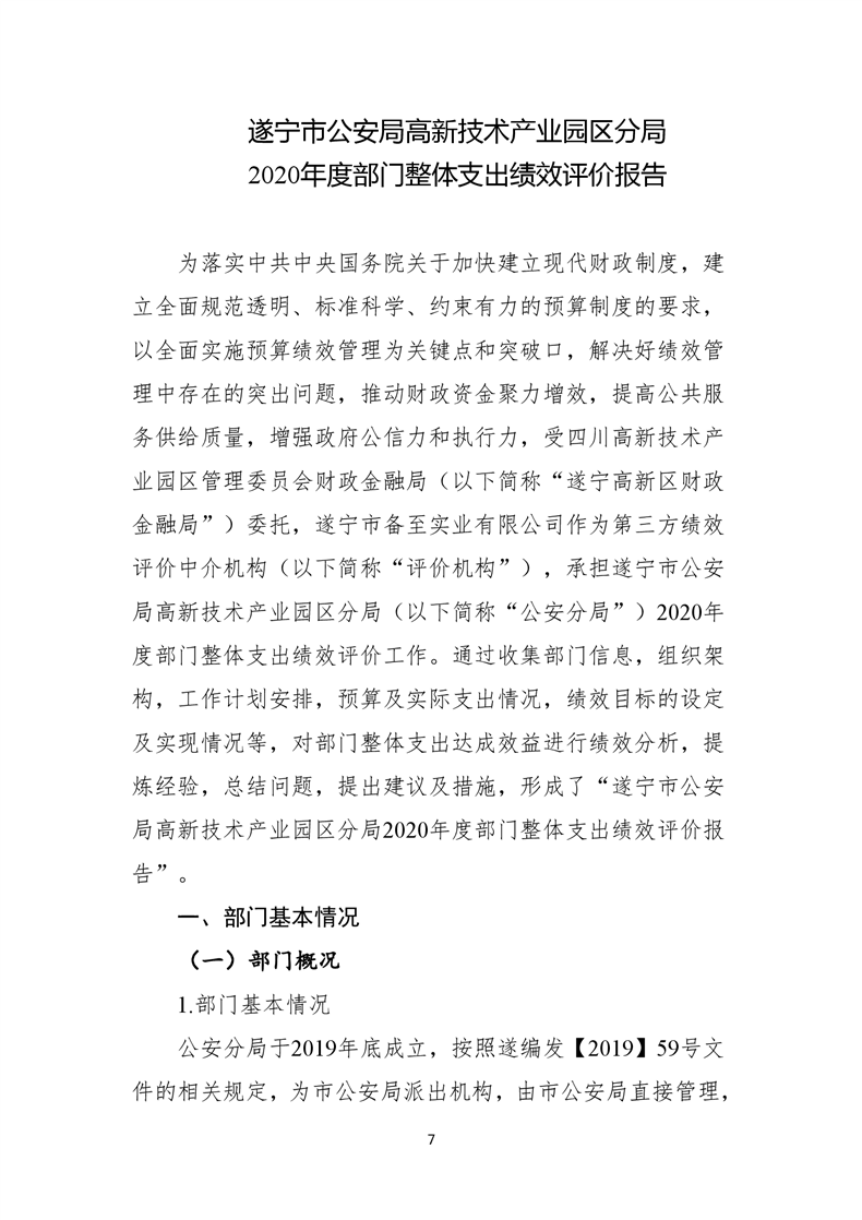 遂宁市公安局高新技术产业园区分局2020年度部门整体支出绩效评价报告
