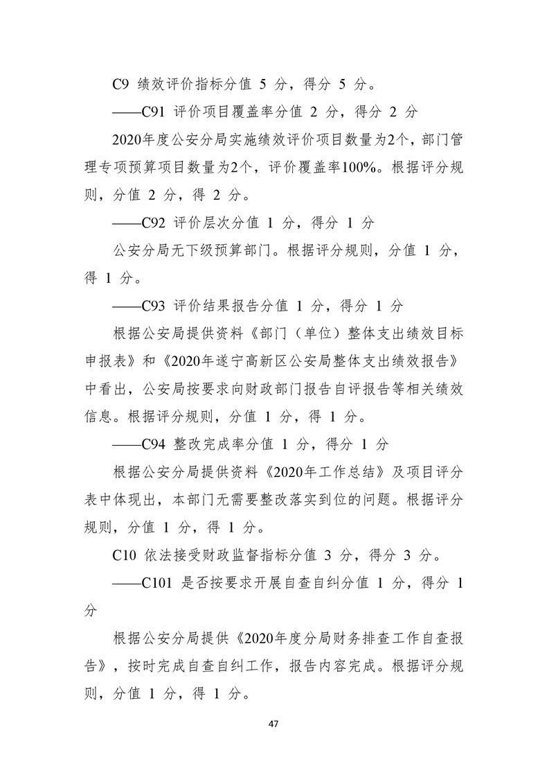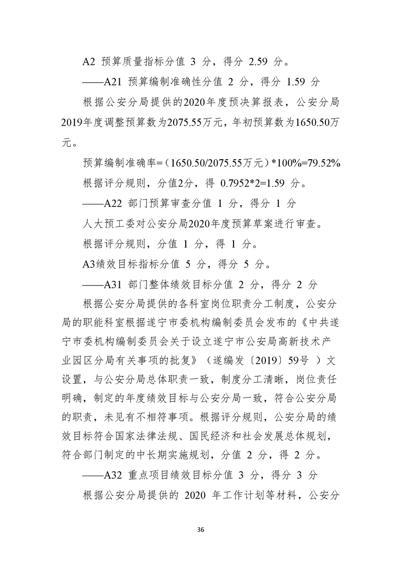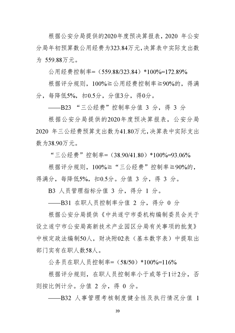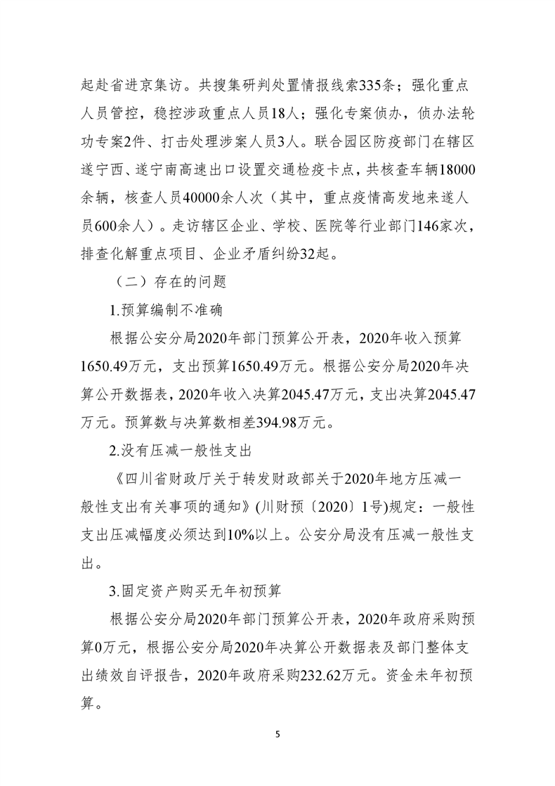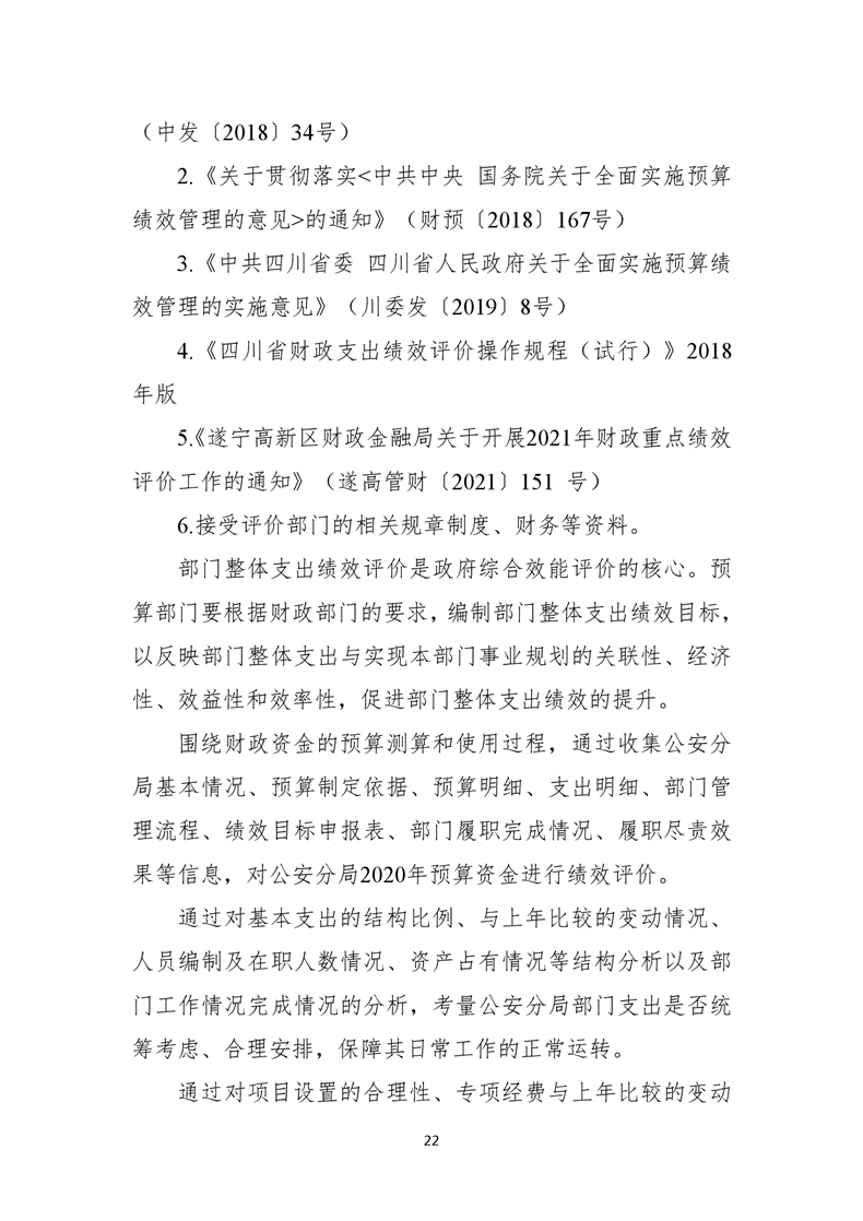 遂宁市公安局高新技术产业园区分局2020年度部门整体支出绩效评价报告