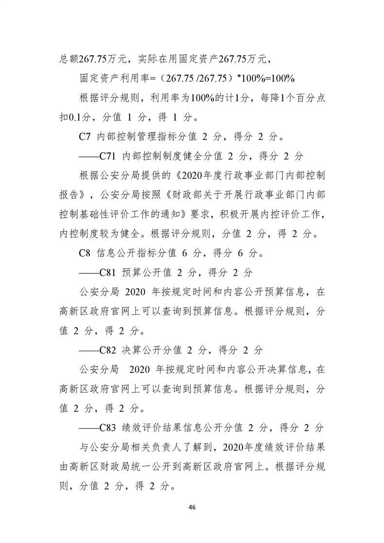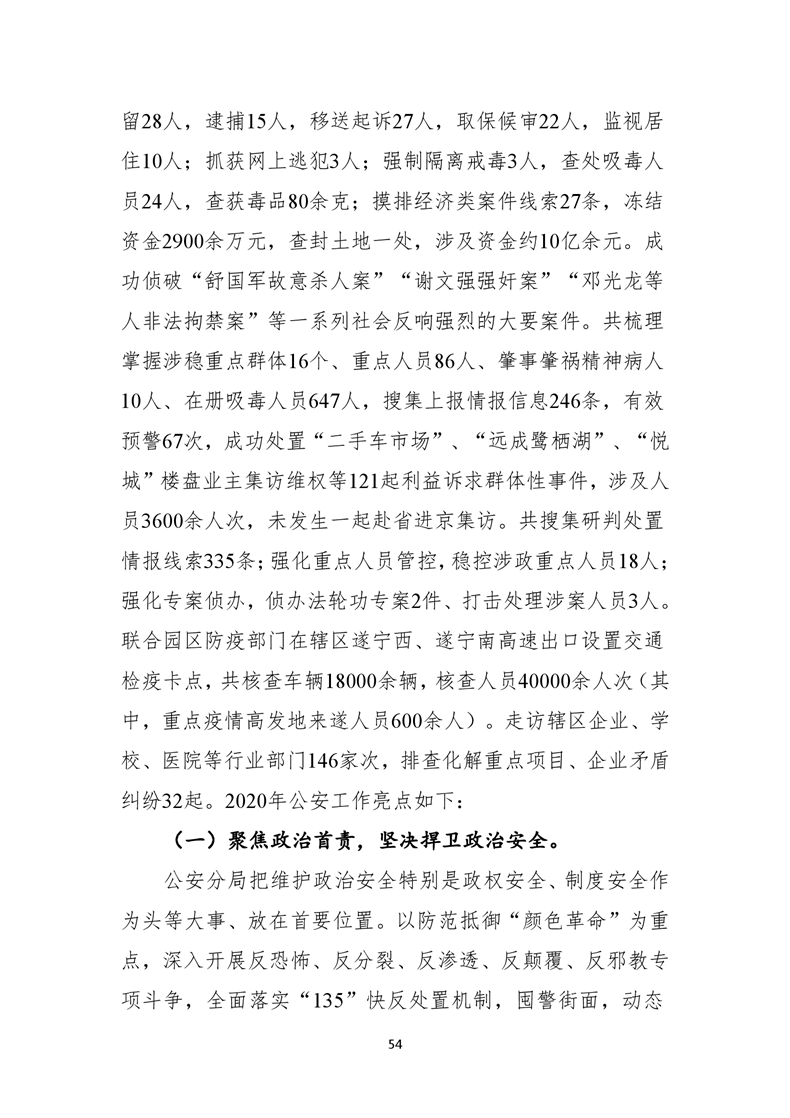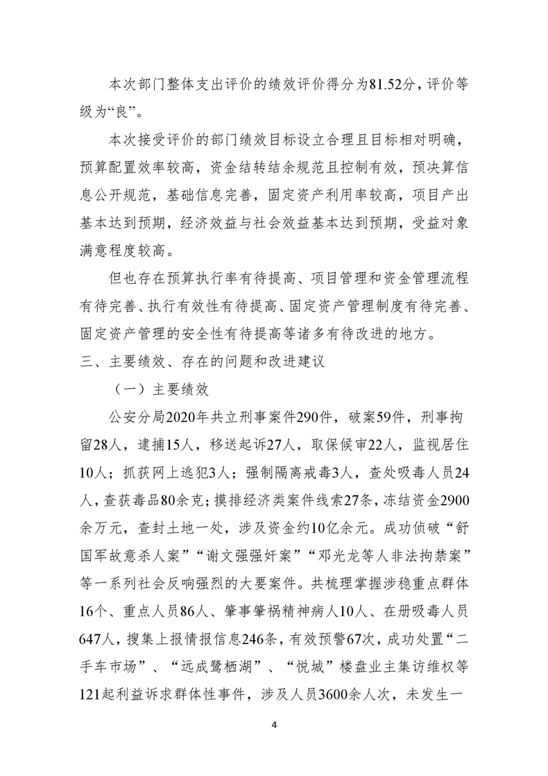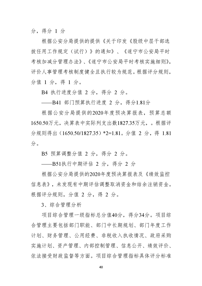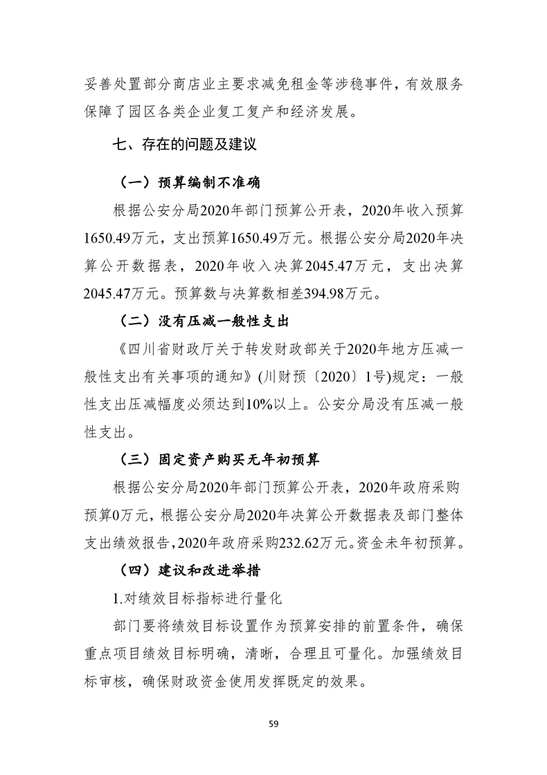 遂宁市公安局高新技术产业园区分局2020年度部门整体支出绩效评价报告