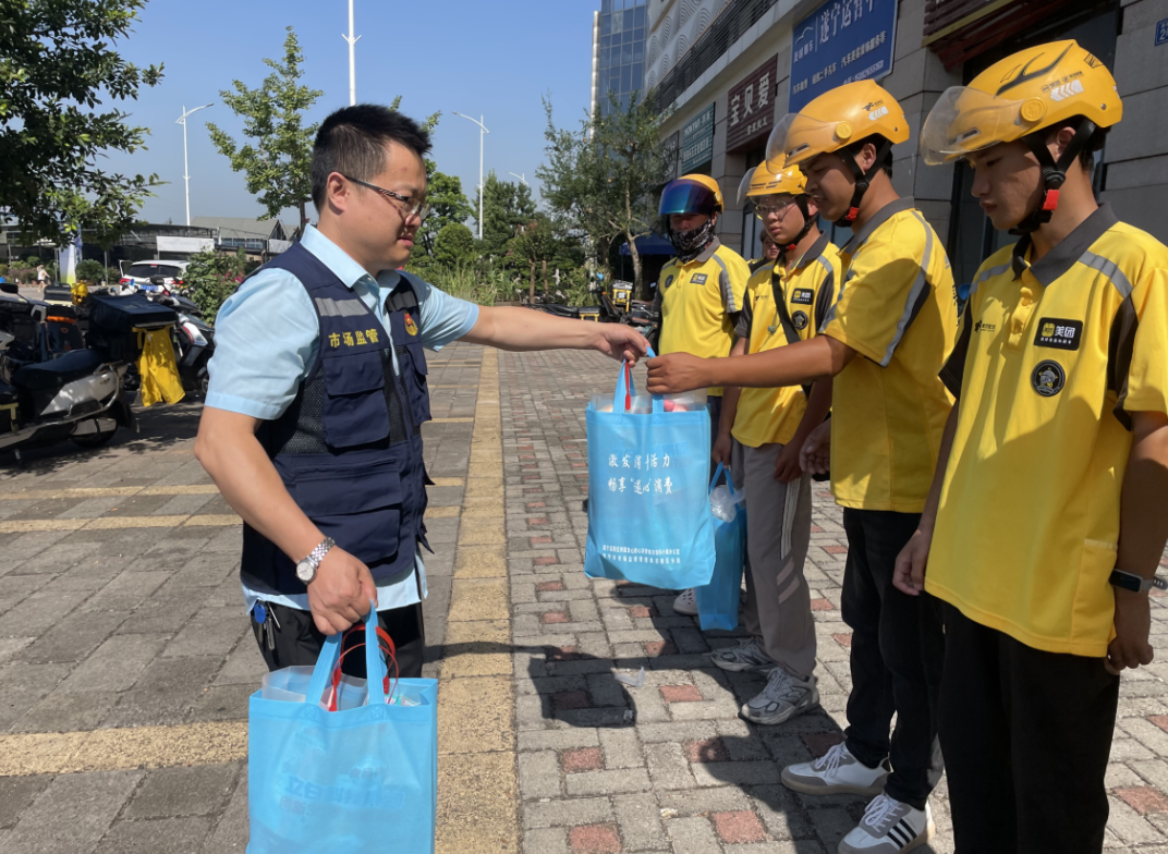 在持续高温的天气下,网约配送员依然坚守岗位,为城市的便捷生活默默奉献。8月13日,遂宁高新区市场监管分局联合“小个专”综合党委深入高新区美团外卖站点,开展“炎炎酷暑‘送清凉’,满满关怀沁‘骑’心”酷暑慰问活动。