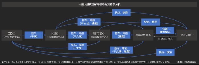 企业发展到一定阶段,货品销售网络会不断扩大,这时就必须有大型高效的物流体系作为支撑,就需要大规模运配网络来实现订单履约,物流企业更大更多的商机也因此产生。由此可见,拥有大规模运配网络的主体有两类:第一类是大型货主企业,比如:大型商贸型企业、大型生产制造企业,这些企业自身就拥有庞大复杂的物流体系;第二类是大型物流企业,其承担了诸多客户的物流需求,搭建了一张庞大的物流网络。