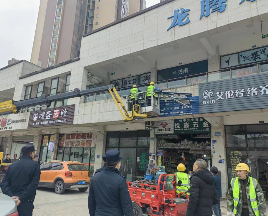 为切实做好2023年度“群众最不满意的10件事”之“市城区部分临街商铺的店招店牌年久失修、裸露的铁架有掉落风险,存在安全隐患”专项整治工作,近日,遂宁高新区综合行政执法局对园区主次干道及背街小巷店招店牌开展“拉网式”排查并进行集中治理,切实消除城市安全隐患,以工作“精”度全面提升城市“靓”度。