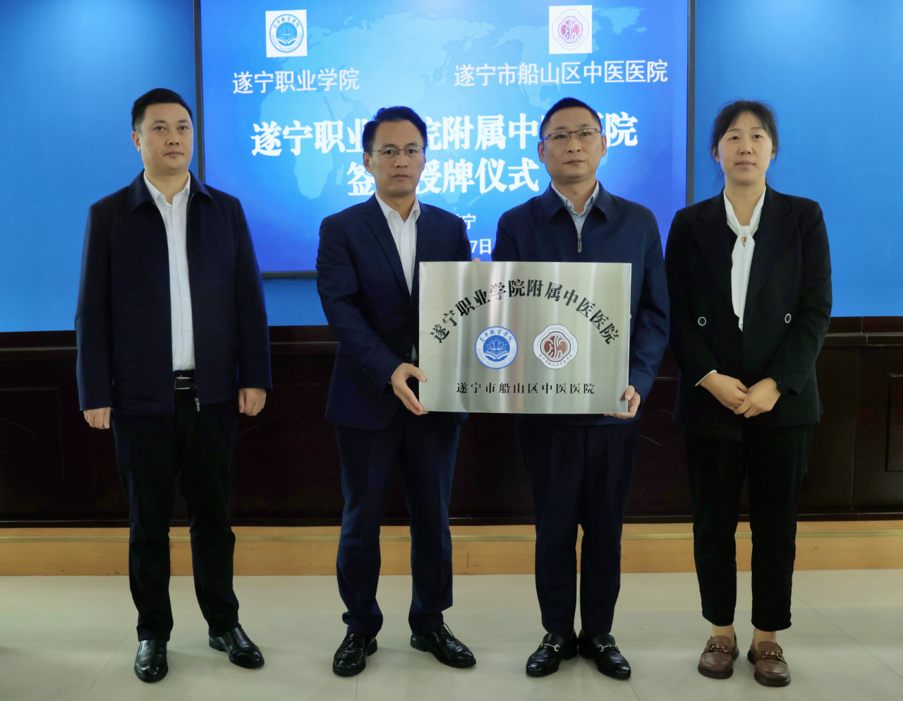 10月27日,遂宁职业学院与船山区中医医院举行战略合作签约暨授牌仪式,共建遂宁职业学院附属中医医院,标志着校院双方携手迈向更加紧密的合作新阶段。遂宁高新区管委会副主任陈建明,船山区副区长胡茜,船山区中医医院党总支书记、院长严军,遂宁职业学院执行校长杨林,以及船山区卫生健康局、遂宁高新区社事群工局等相关负责人参加签约授牌仪式。