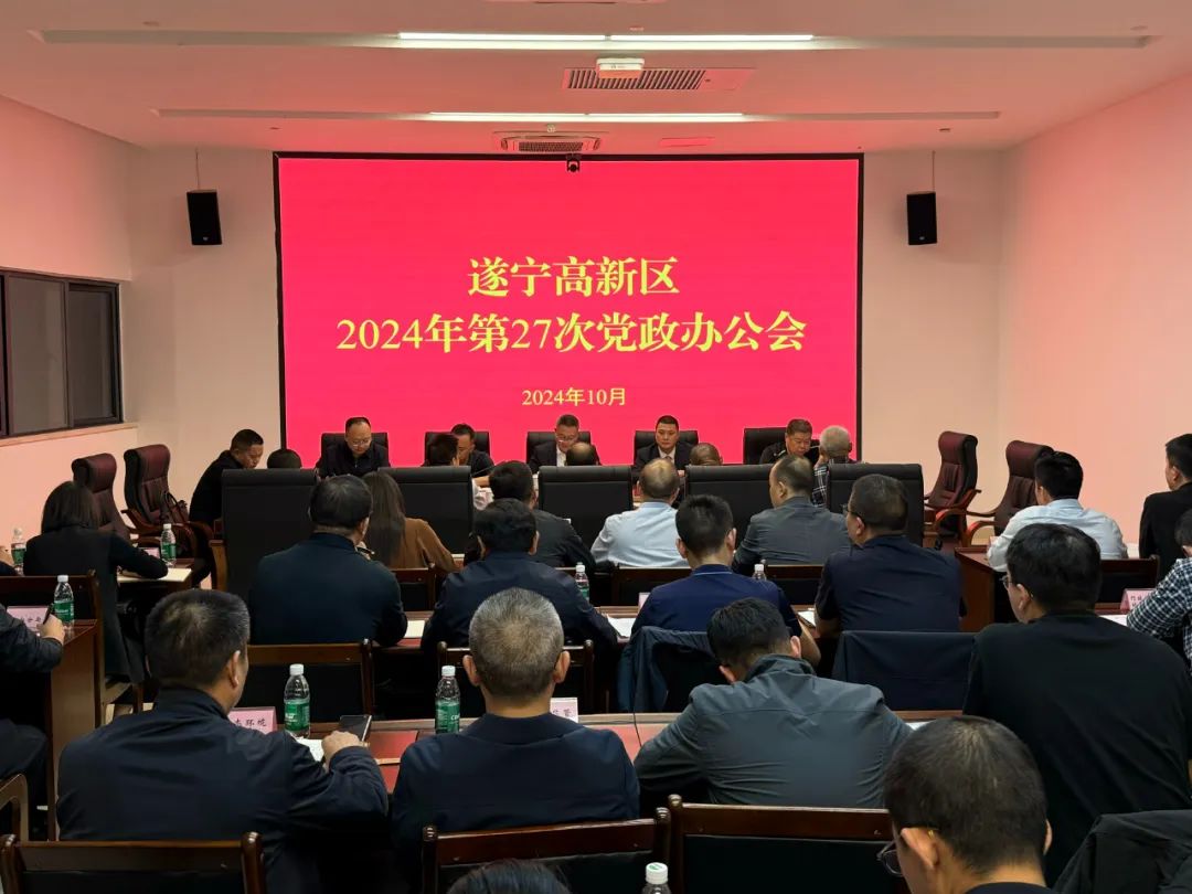 10月30日晚,遂宁高新区党工委副书记、管委会主任唐统主持召开2024年第27次党政办公会,专题传达学习市委八届十次全会精神,研究园区贯彻意见,安排部署重点工作。园区领导陈建明、黄俊宁、赵武军、谭勇、冉茂连、李忠海、徐毅参加会议。