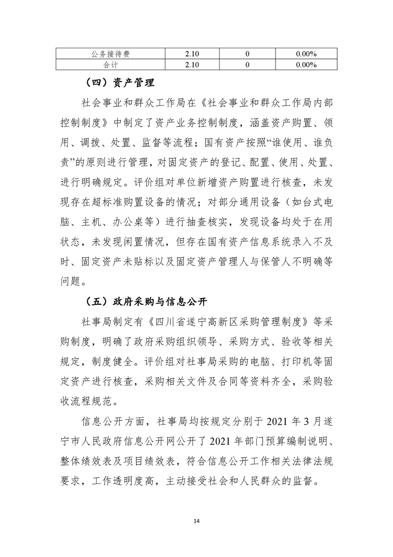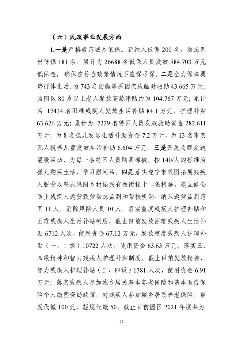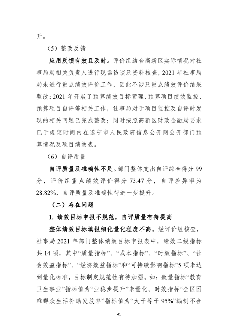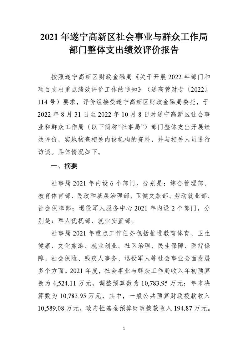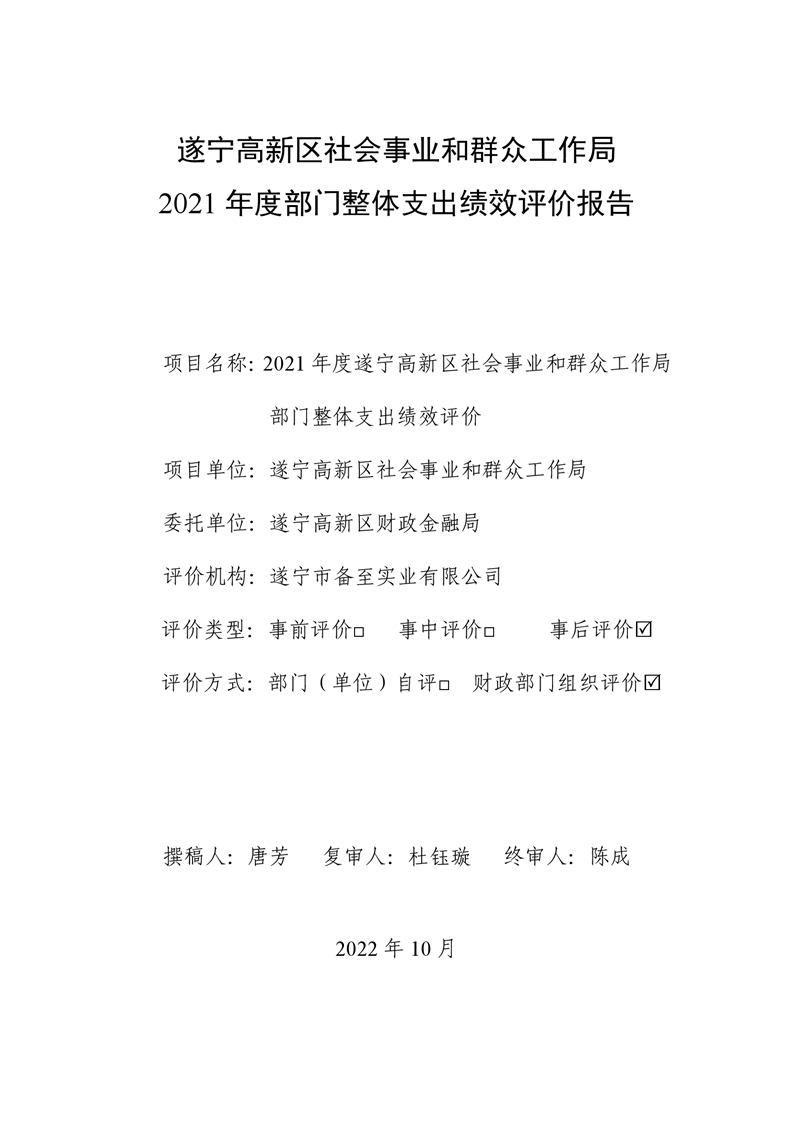 遂宁高新区社会事业和群众工作局2021年度部门整体支出绩效评价报告