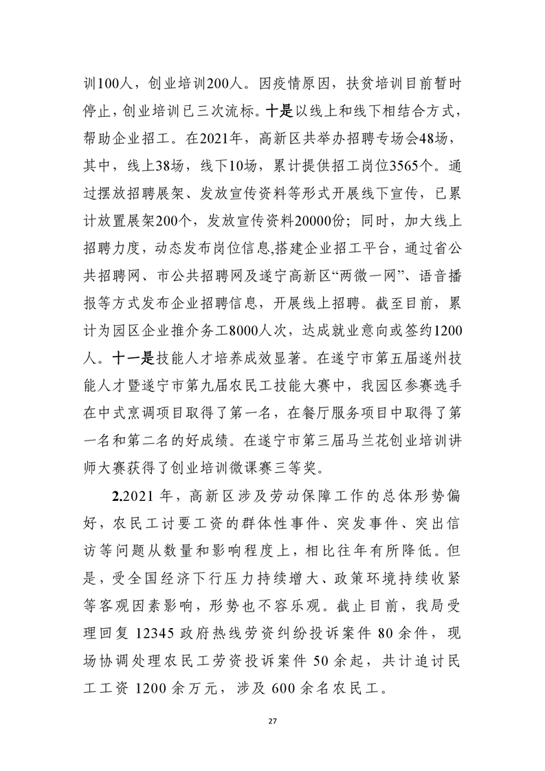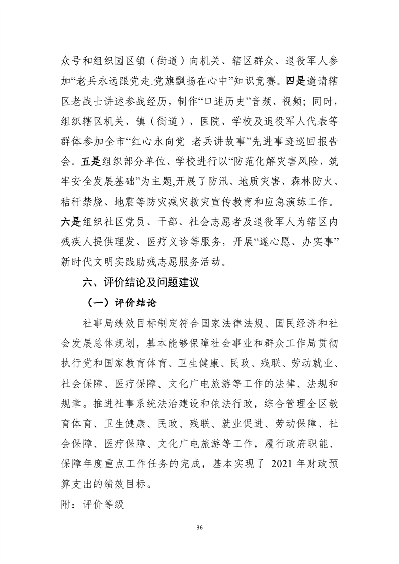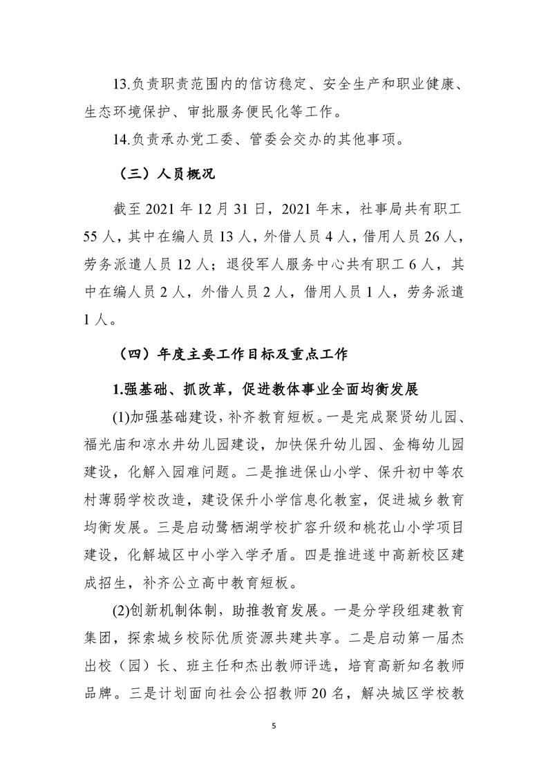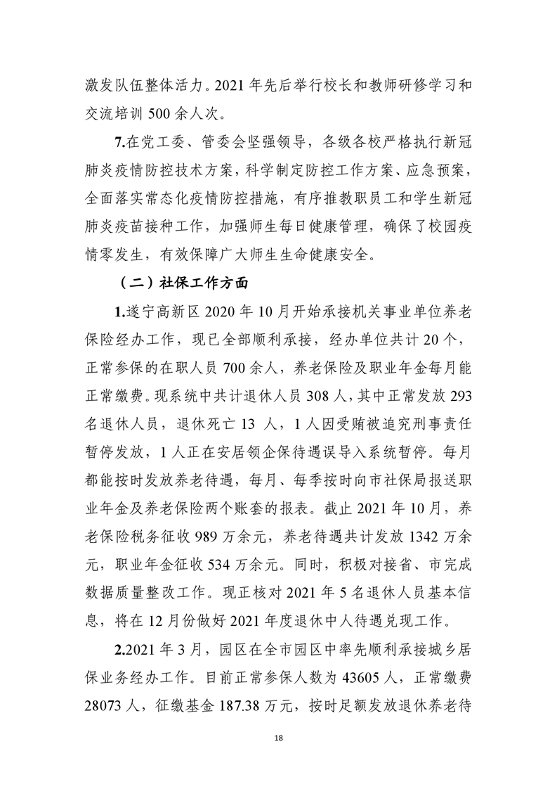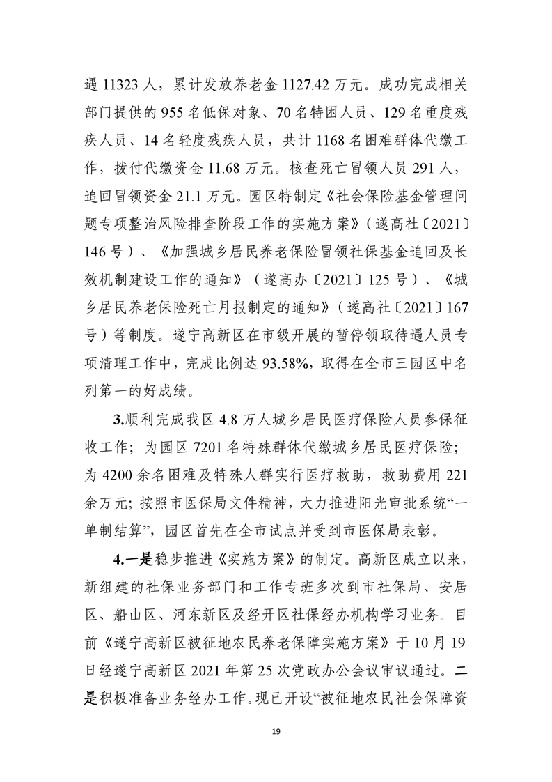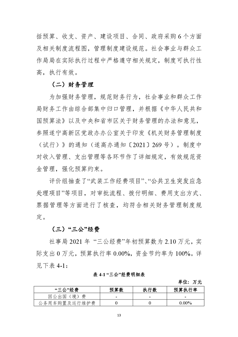 遂宁高新区社会事业和群众工作局2021年度部门整体支出绩效评价报告