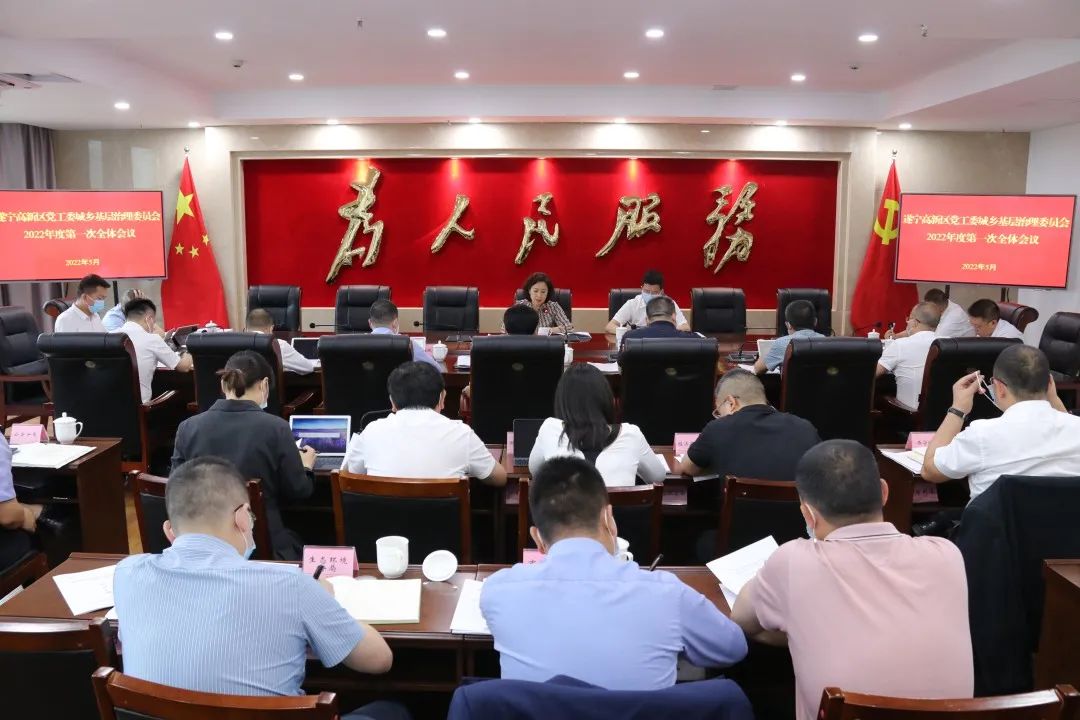 5月25日,遂宁高新区党工委城乡基层治理委员会召开2022年度第一次全体会议,传达学习省市相关会议精神,总结2021年园区城乡基层治理工作,审议相关文件,安排部署2022年重点工作。市委常委、宣传部部长,市总工会主席,遂宁高新区党工委书记、党工委城乡基层治理委员会主任涂虹主持会议并讲话。园区领导李戈亮、王海军、金欣、赵武军、黄杰参加会议。