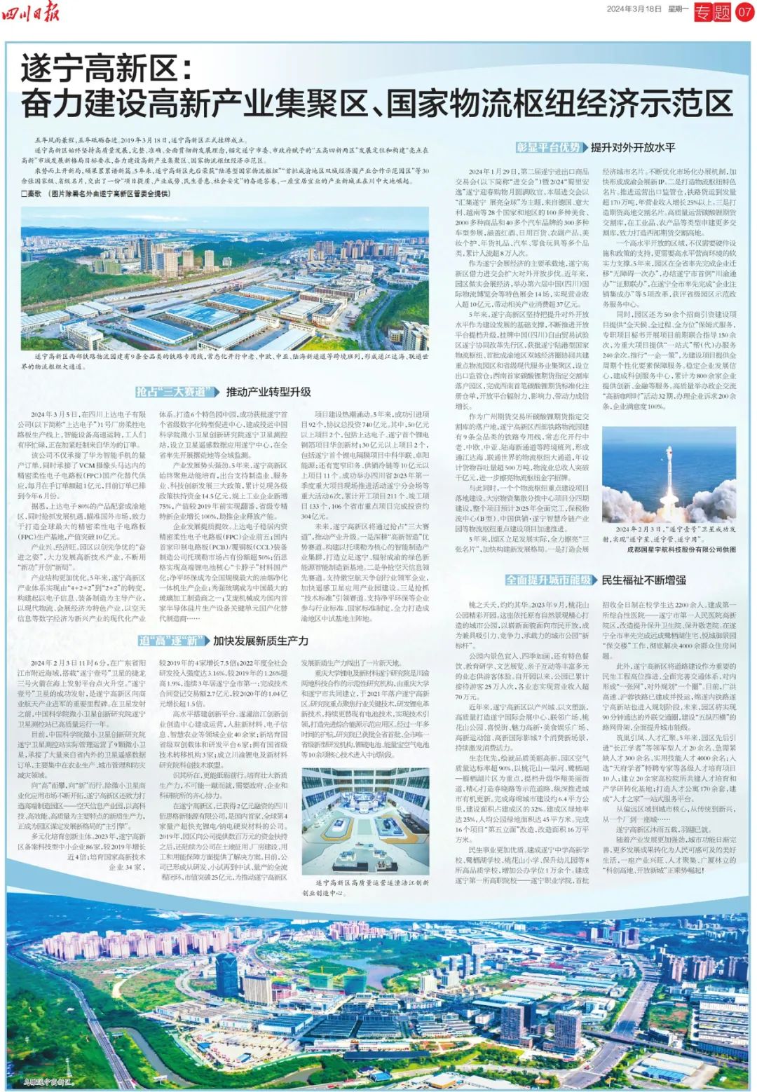 向“高”而攀,向“新”而行。除微小卫星商业化应用市场不断开拓,遂宁高新区还致力打造高端制造园区——空天信息产业园,以高科技、高效能、高质量为主要特点的新质生产力,正成为园区谋定发展新格局的“主引擎”。