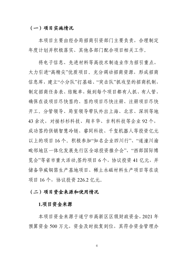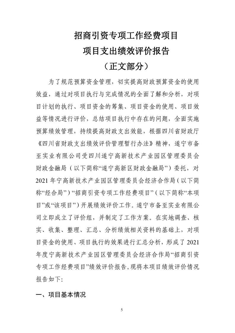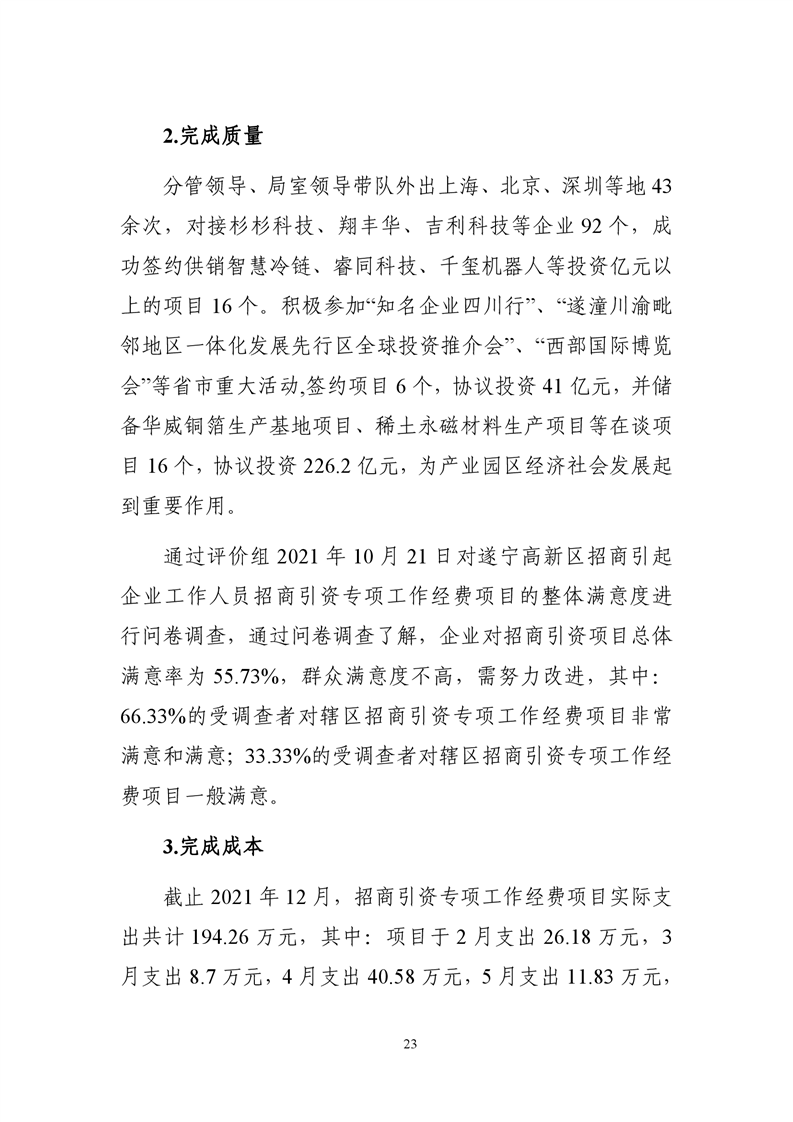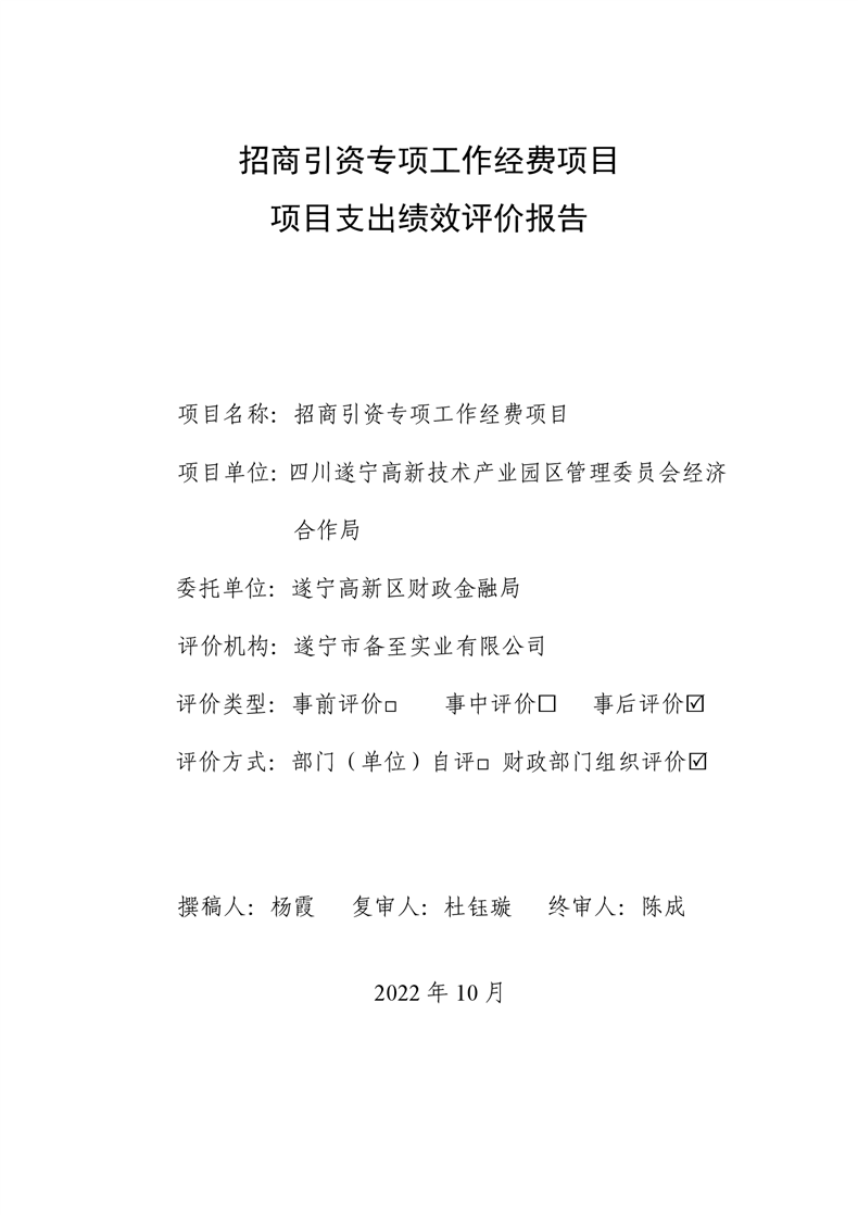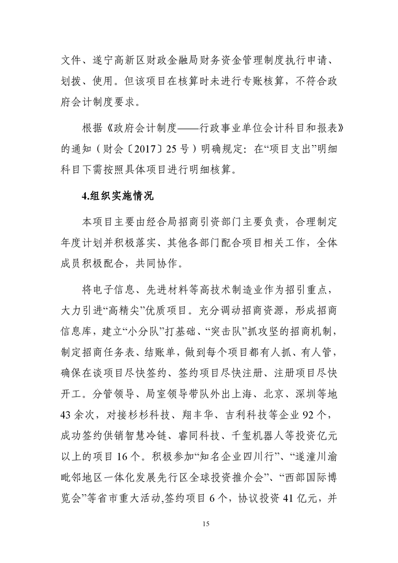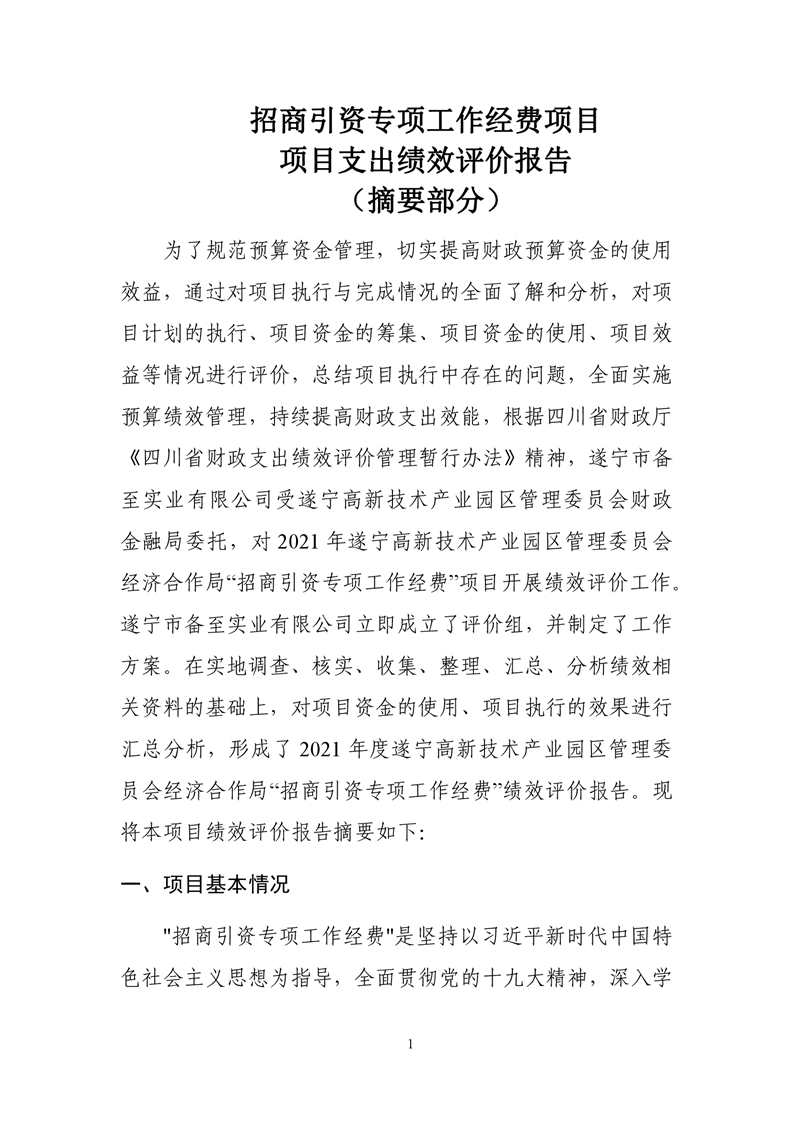遂宁高新区招商引资专项工作经费项目项目支出绩效评价报告