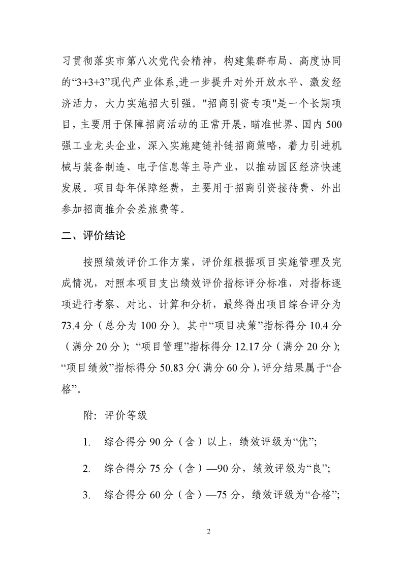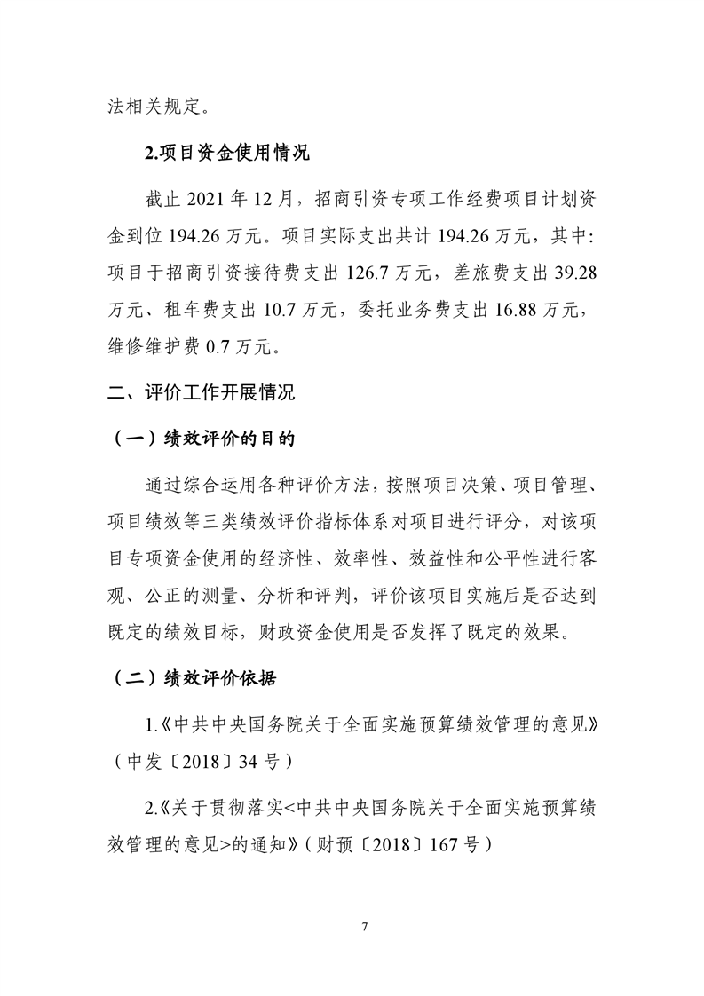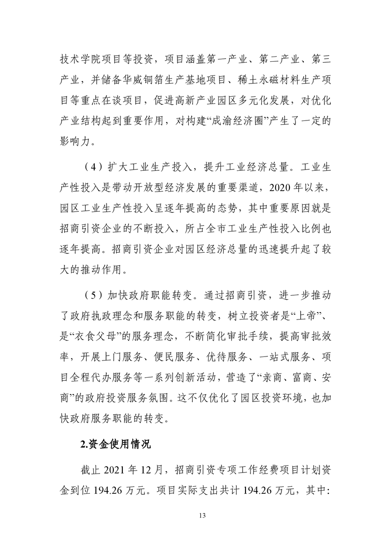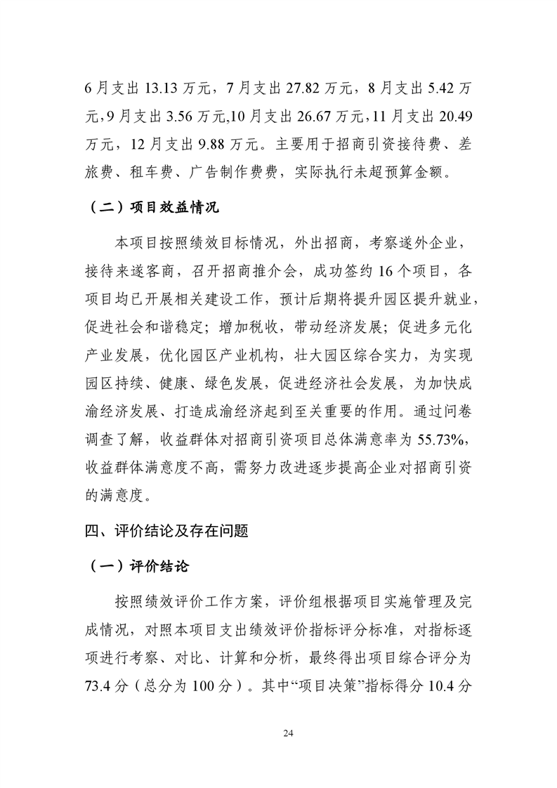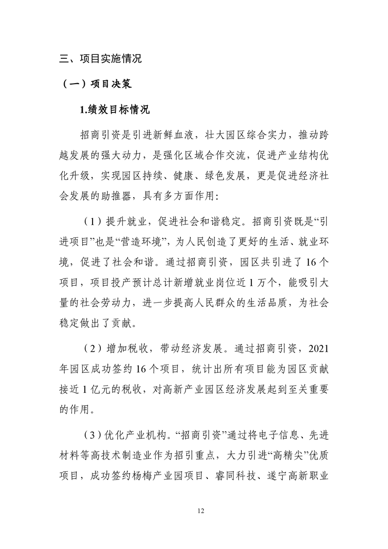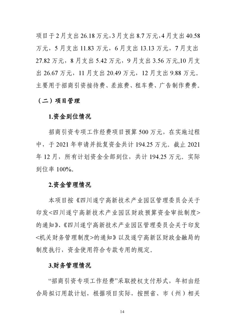 遂宁高新区招商引资专项工作经费项目项目支出绩效评价报告