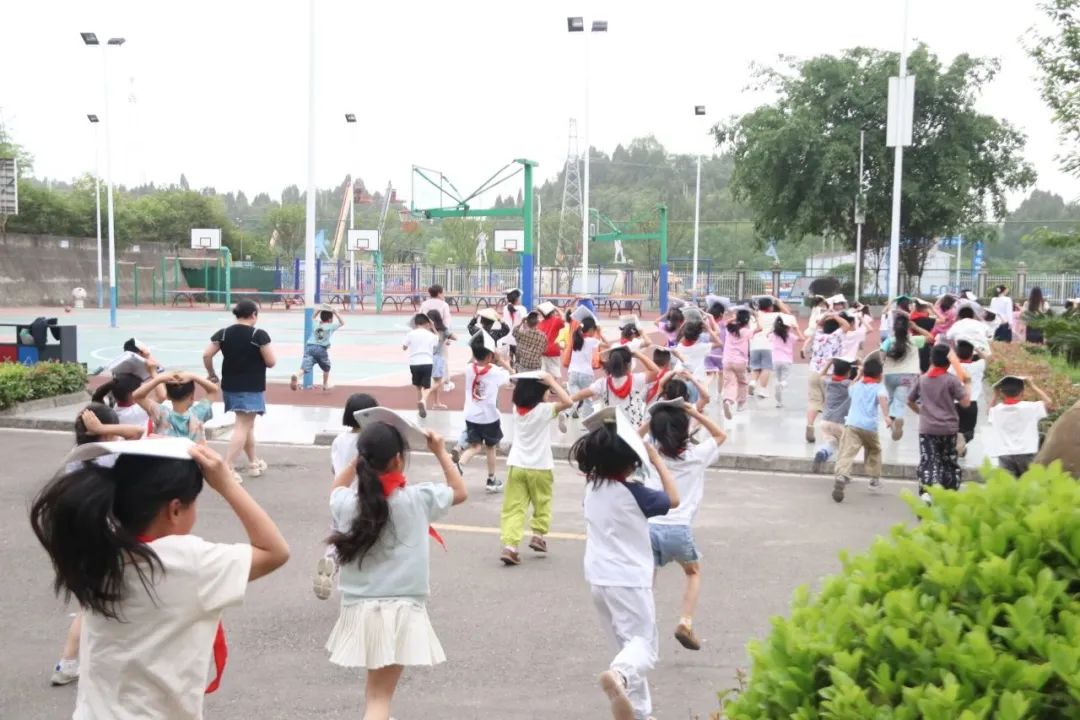 当天,演练开始后,遂宁高新区物流港实验小学校内响起了“危险警报”,各班正副班主任立即告知学生不要惊慌,并指挥学生躲到桌下,以厚书本护住头部。在第二声警报响起后,全校师生迅速作出反应,各个岗位值守的老师们提前到达指定位置,指导学生有序疏散。班主任带领学生按指定路线安全及时撤离到操场集合,并立即清点人数,报告到指挥处,整个疏散演练过程安全、快速、有序。