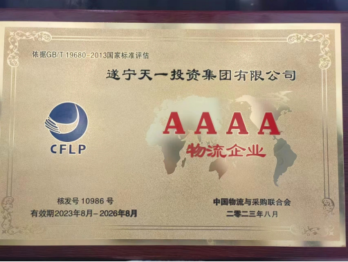 9月27日,第36届物流企业授牌暨供应链创新发展大会在武汉召开。会上,遂宁天一投资集团有限公司作为遂宁市首个成功通过中国物流与采购联合会评估的市属国有平台公司,获4A级物流企业授牌。