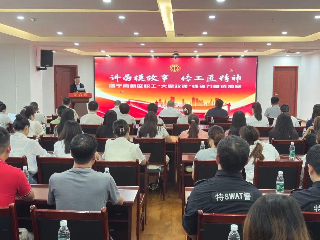 9月11日,在遂宁高新区管委会1700会议室,迎来一场特殊的“教学比武”——由遂宁高新区总工会主办的职工“大思政课”师资力量选拔赛活动在此举行。7名来自企业、学校、农业合作社的四川省劳动模范、五一巾帼标兵、技术能手同台赛课,充分展现了高新职工思政教育队伍的专业素养与精神风貌。