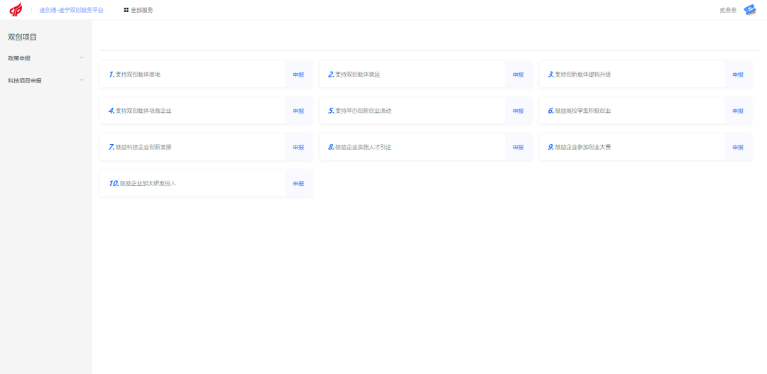 3月5日前,符合《遂宁高新技术产业园区关于大力推进大众创业万众创新的十条政策措施(试行)》相关条件的企业与个人,可注册登录“遂宁高新区创新创业公共服务平台”(http://49.234.96.194/),按流程申报遂宁高新区“双创十条”政策。