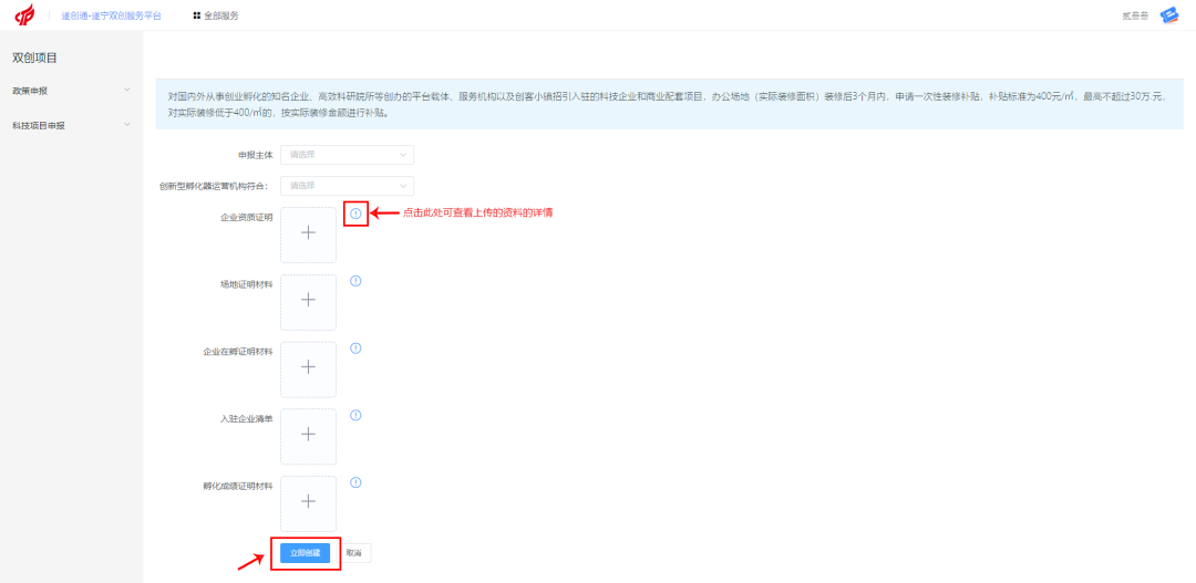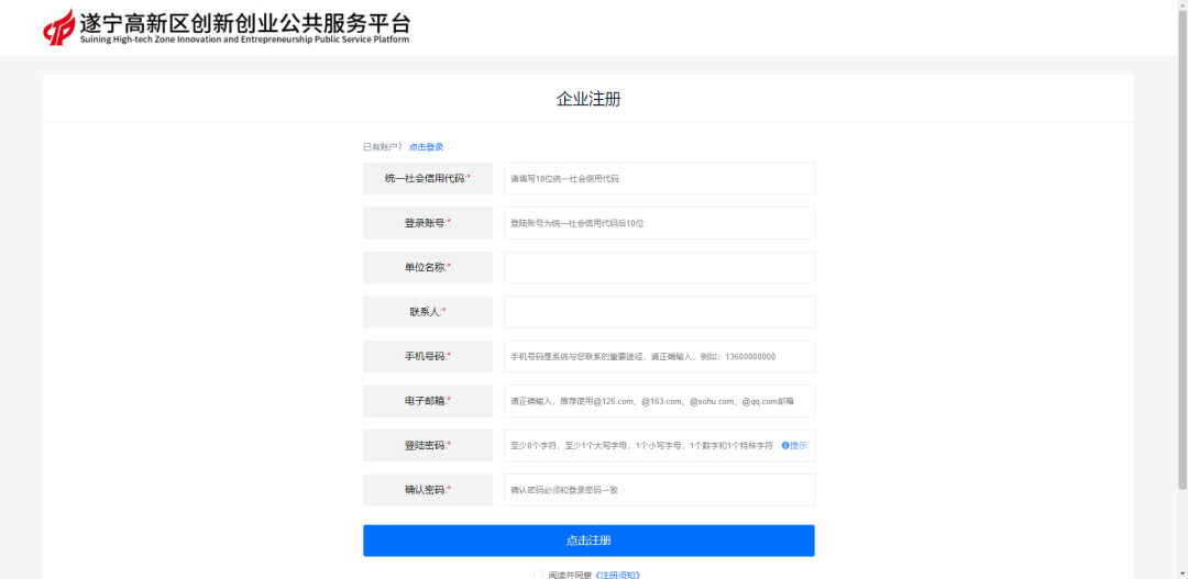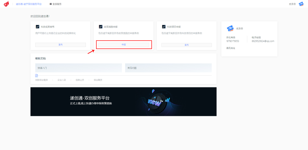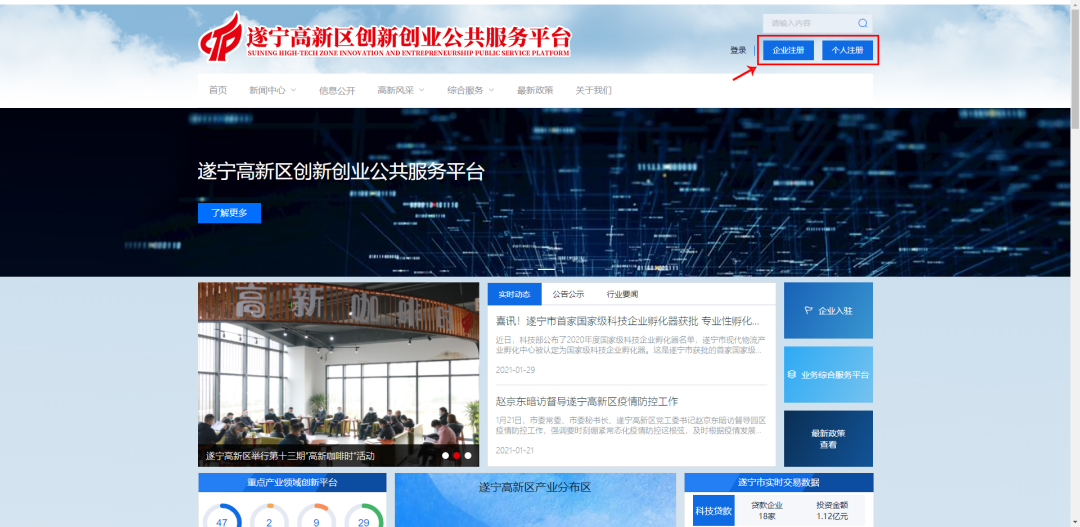 1.登录“遂宁高新区创新创业公共服务平台”(http://49.234.96.194/)