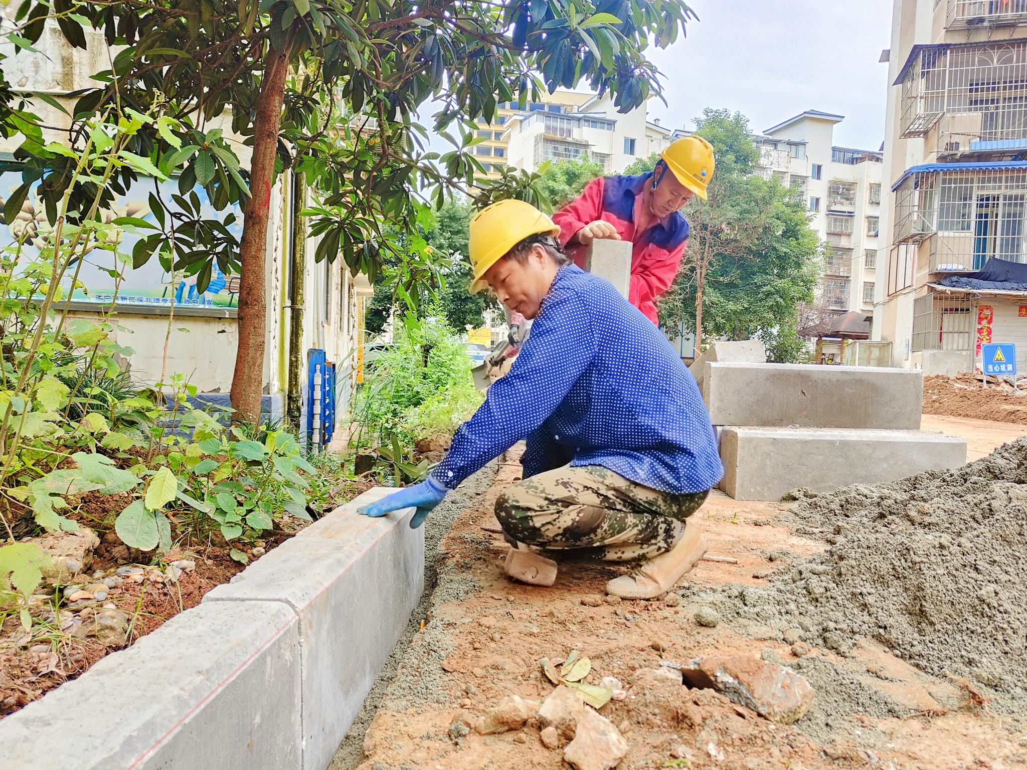 10月8日上午,记者在遂宁高新区瑰宝明珠小区看到,挖掘机、铲车配合作业,工人们正在对路边绿化带进行施工改造,小区改造工作正有序进行。