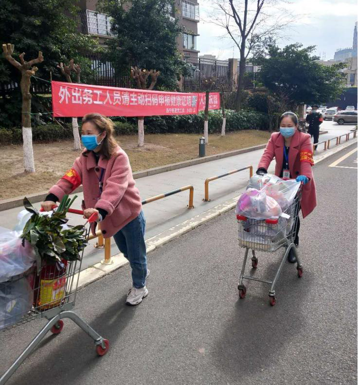 手戴红袖标,胸挂工作牌,这是她们的标志。给居家隔离户买菜、送菜、送包裹、送药、送体温计、丢生活垃圾、劝导群众出门要戴口罩,不要打堆堆,无事尽量不出门,从前期排查小区居民到后期排查企业……她们的工作看似平凡,其实一点也不平凡;看似普通,却一点也不普通。就是她们做的这些所谓的平凡事、普通事使万恶的病毒未在五里垭社区发芽、生根,让社区至今都保持着"零"的好战绩。