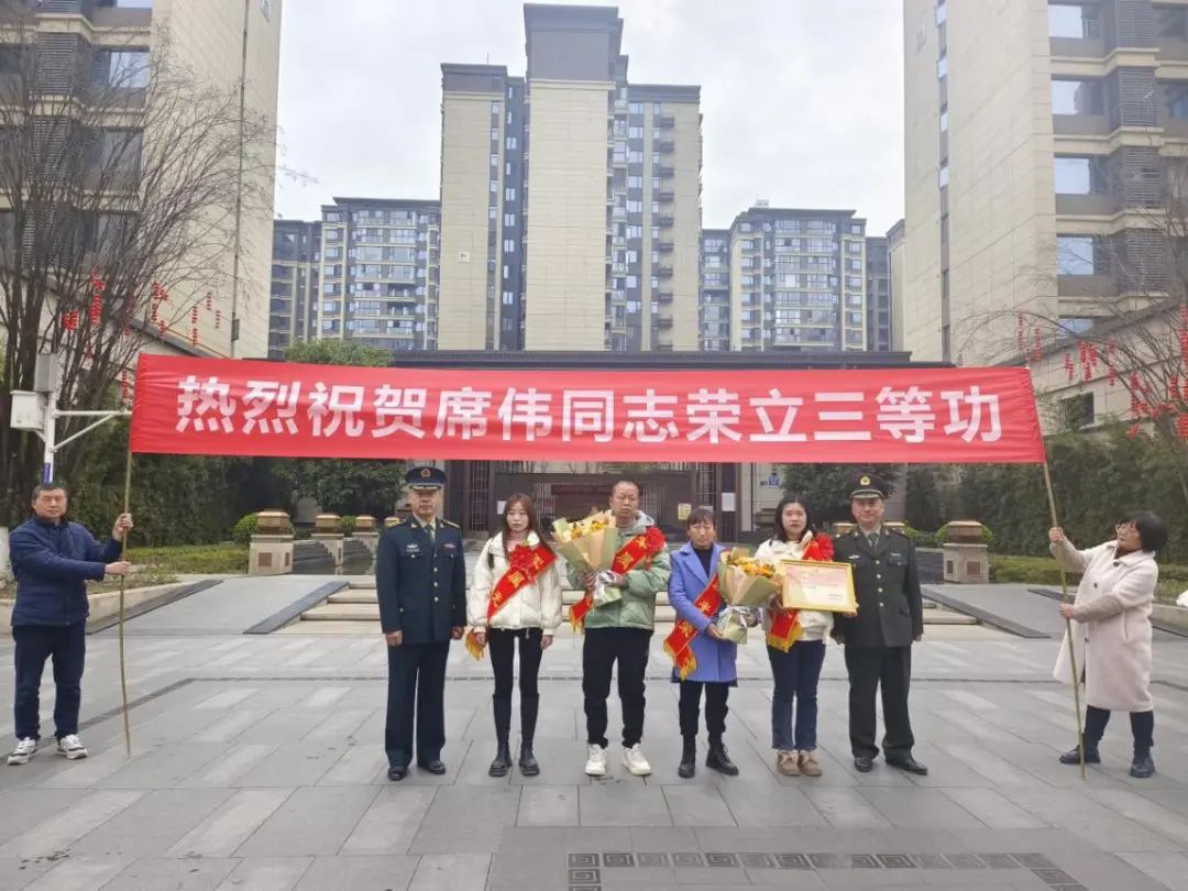 为进一步弘扬新时代拥军优属光荣传统,营造关爱军人的良好社会氛围。3月6日上午,遂宁高新区退役军人服务中心会同船山区人武部、西宁街道及部队为荣立个人三等功的现役军人家属送上喜报、鲜花及慰问金,为他们披上绶带、佩戴红花、挂上横幅,一路敲锣打鼓,让现役军人家属倍感荣光。