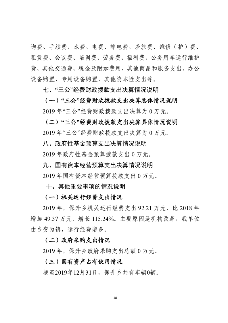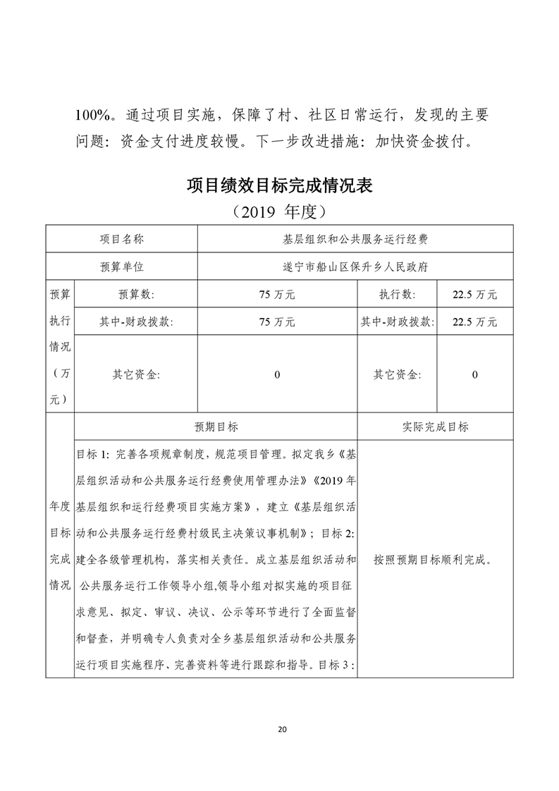 2019年度四川省遂宁市船山区保升乡人民政府部门决算