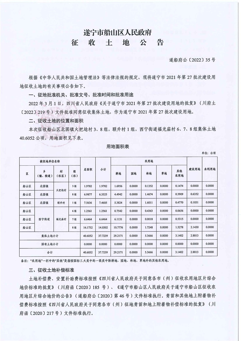 遂宁市船山区人民政府征收土地公告(2021年第27批次)