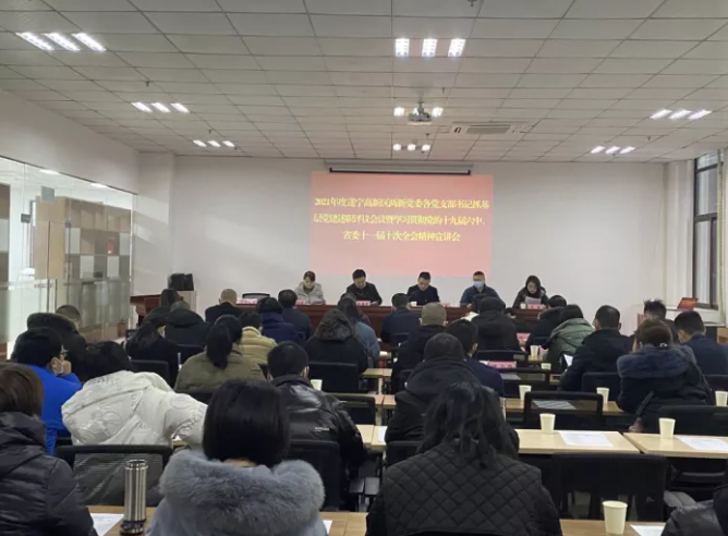 1月13日,遂宁高新区召开两新党委各党支部书记抓基层党建述职评议会议暨学习贯彻党的十九届六中全会、省委十一届十次全会精神宣讲会。遂宁高新区党工委副书记王海军出席会议并讲话。党群工作部部长、两新党委书记王勇主持会议并宣讲。园区两新党委委员和两新党委下属31个党支部书记及党员代表参加会议。