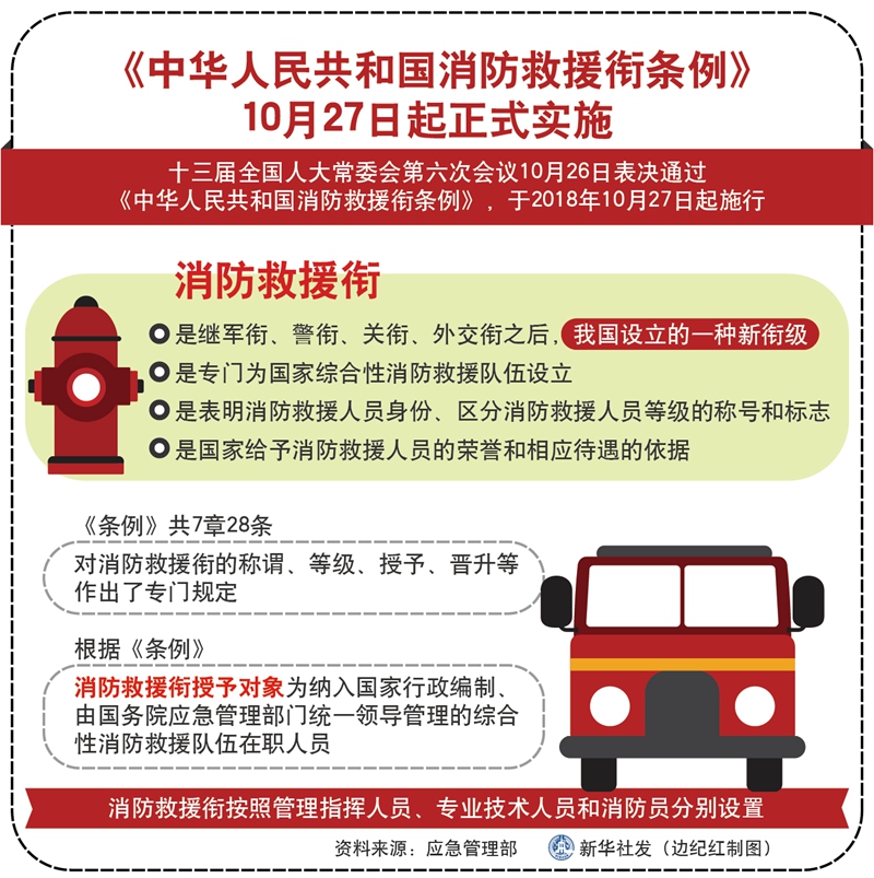 图表:《中华人民共和国消防救援衔条例》10月27日起正式实施
