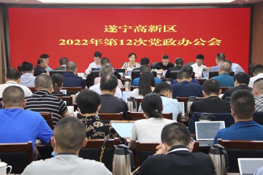 93日,遂宁高新区召开2022年第12次党政办公会,传达学习近期中省市相关会议精神,研究园区贯彻落实意见。市委常委、宣传部部长,市总工会主席,遂宁高新区党工委书记涂虹主持会议并讲话。遂宁高新区党工委副书记、管委会主任唐统,园区领导李戈亮、王海军、陈建明、黄俊宁、赵武军、谭勇、庞博、徐毅参加会议。