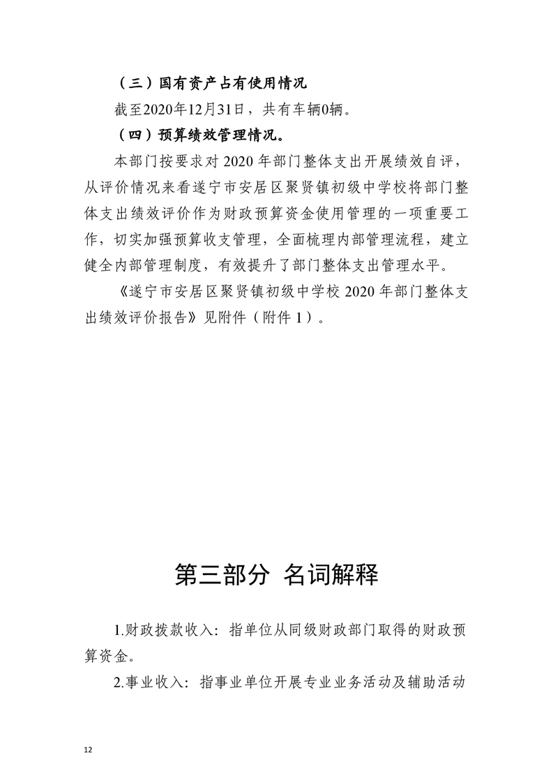 2020年度四川省遂宁市安居区聚贤镇初级中学校决算公开