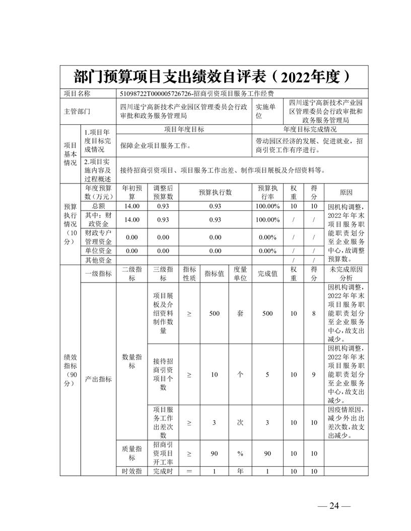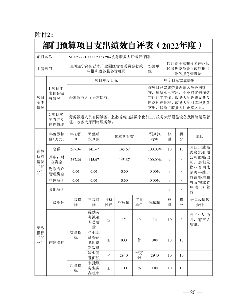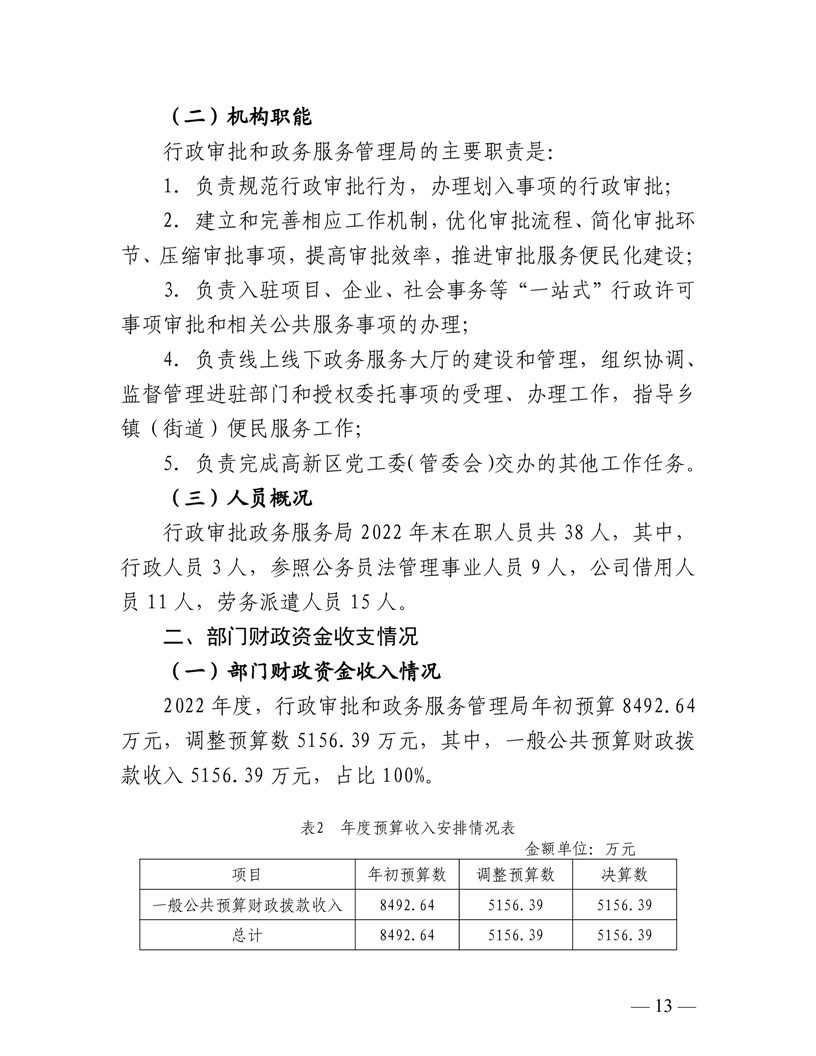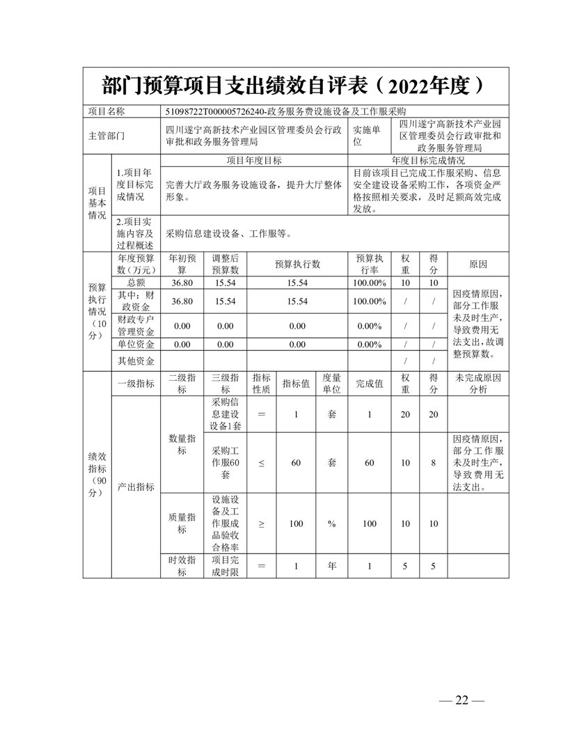 2022年度遂宁高新区行政审批和政务服务管理局决算