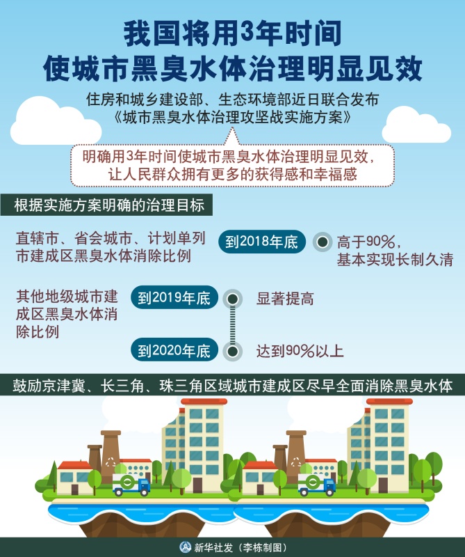 图表:我国将用3年时间使城市黑臭水体治理明显见效