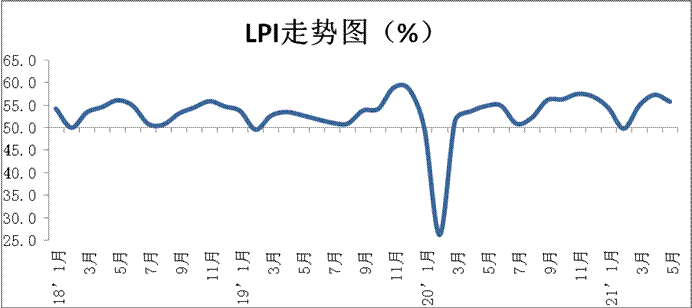 中国物流与采购联合会发布的2021年5月份中国物流业景气指数为55.8%,较上月回落1.5个百分点;中国仓储指数为51.3%,较上月下降3.7个百分点。
