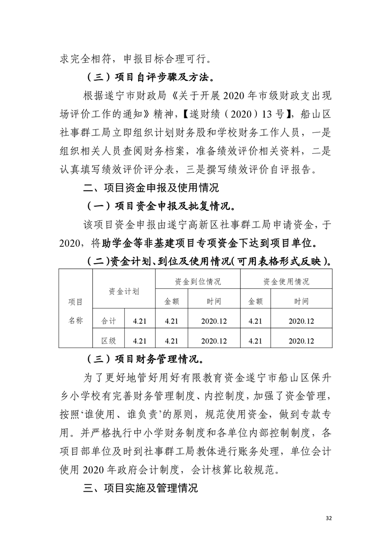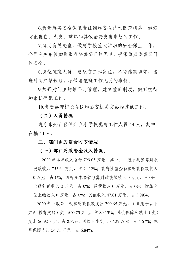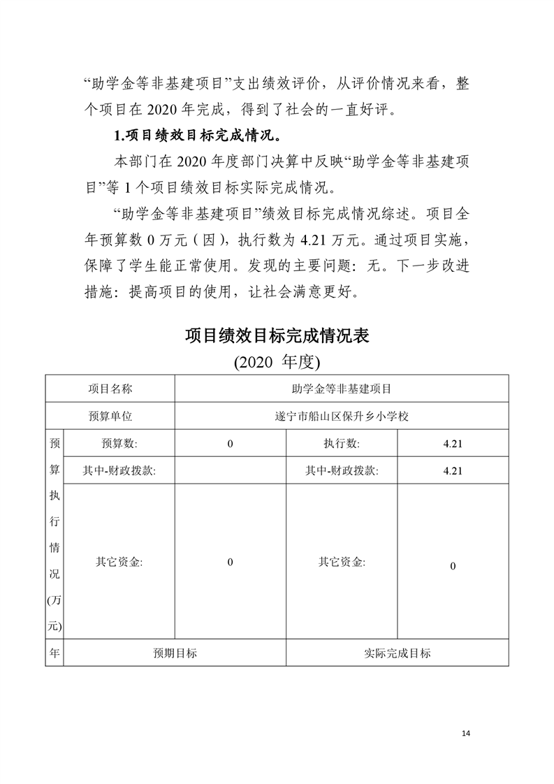 2020年度四川省遂宁市船山区保升乡小学校部门决算