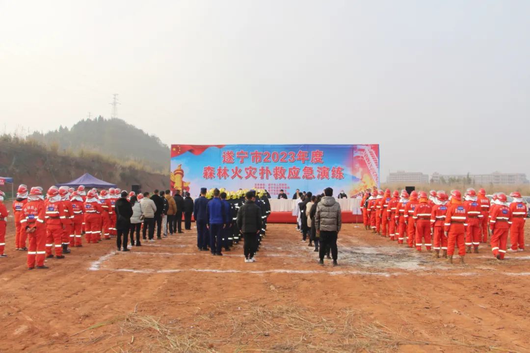1月12日,遂宁市2023年森林火灾扑救应急演练在高新区举行。遂宁高新区管委会副主任金欣参加演练并作点评。