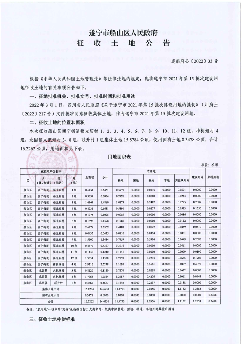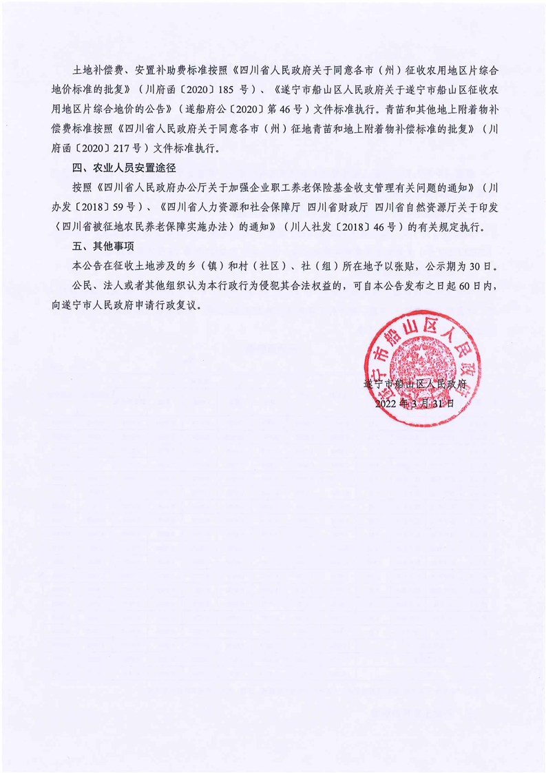 遂宁市船山区人民政府征收土地公告(2021年第15批次)