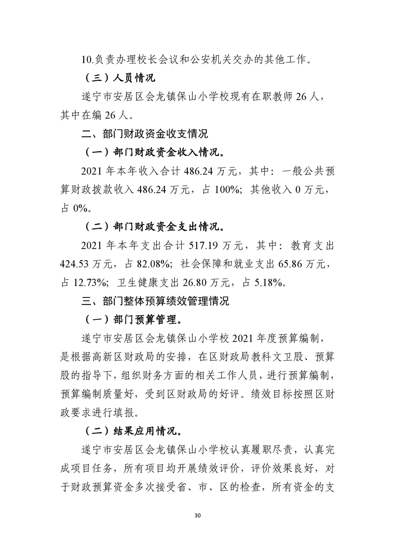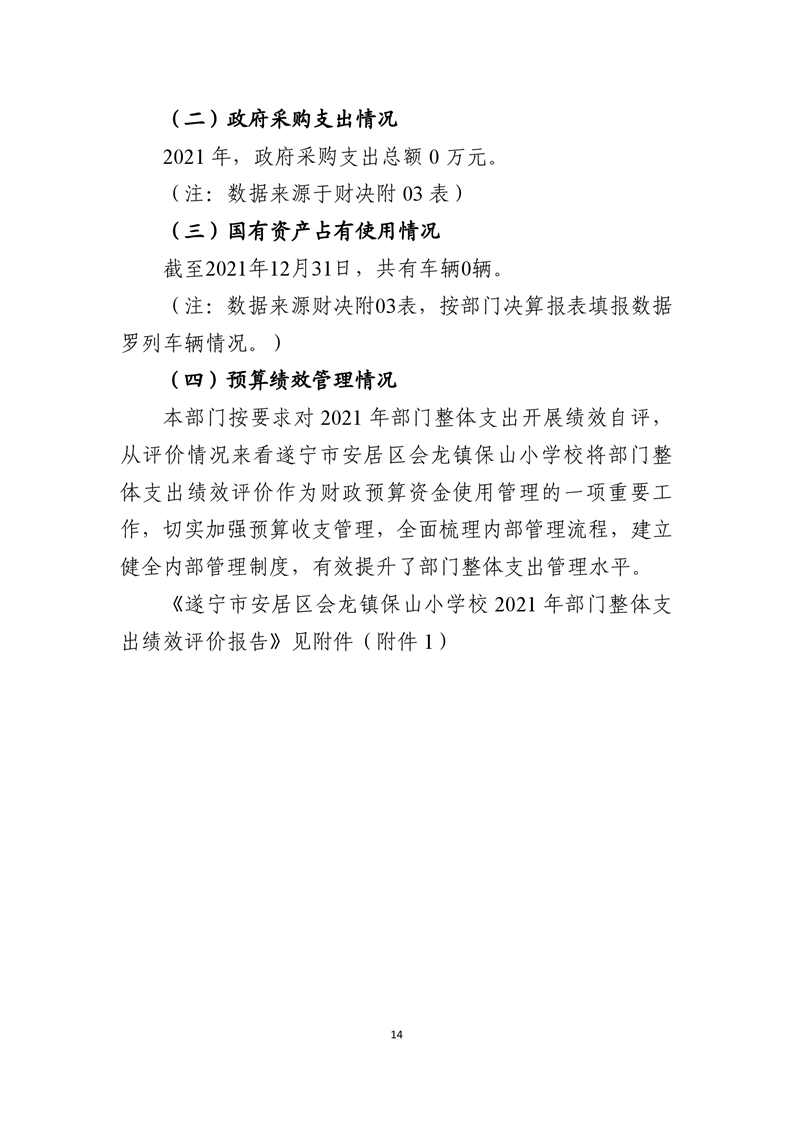 2021年度四川省遂宁市安居区会龙镇保山小学校部门决算