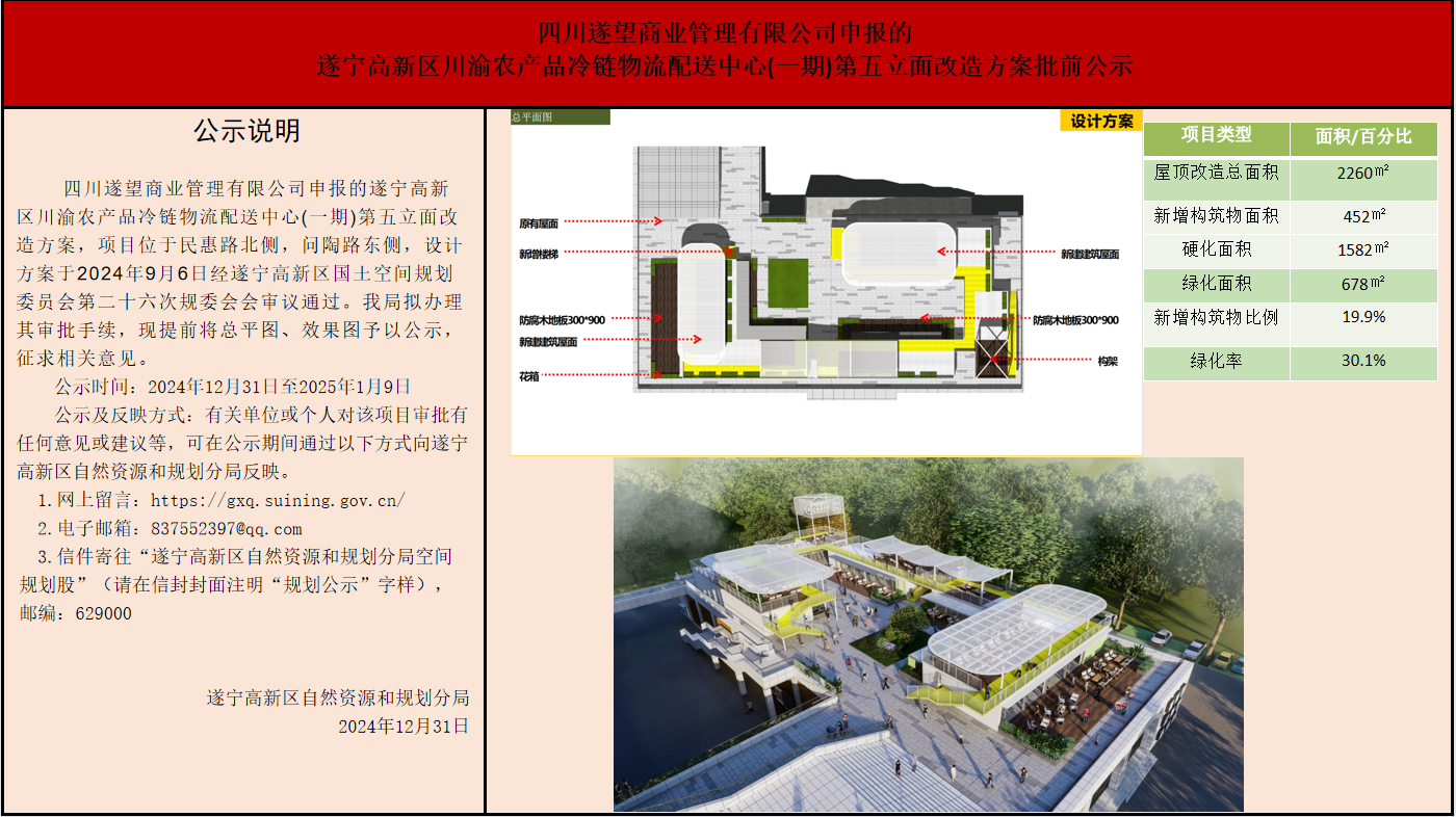 遂宁高新区川渝农产品冷链物流配送中心(一期)第五立面改造方案批前公示
