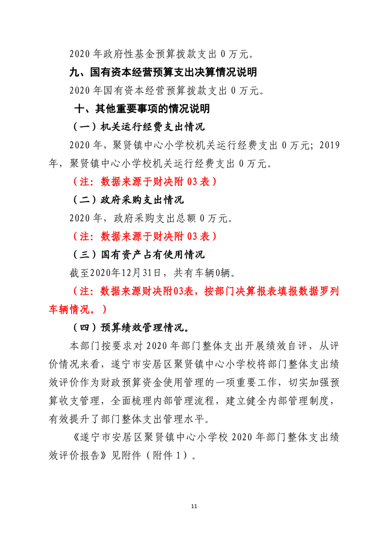 2020年度四川省遂宁市安居区聚贤镇中心小学校部门决算