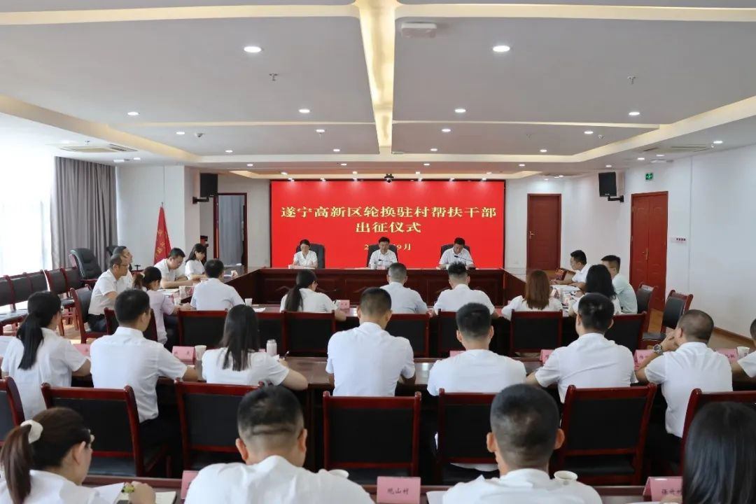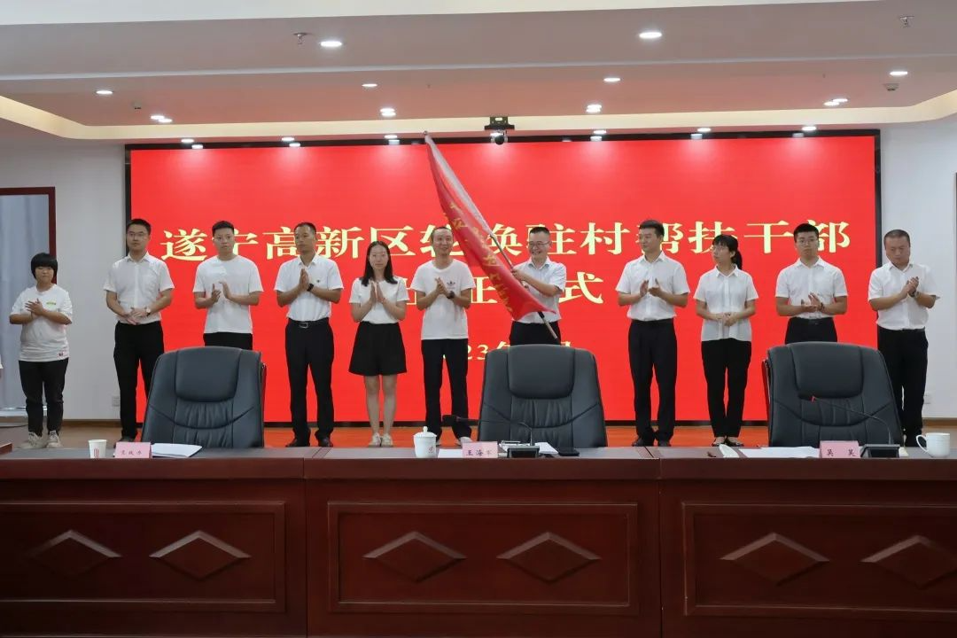 9月7日,遂宁高新区举行轮换驻村帮扶干部出征仪式。遂宁高新区党工委副书记王海军出席出征仪式,并为新一轮驻村帮扶工作队授旗。15名驻村帮扶干部接过乡村振兴的“接力棒”,正式“奔赴战场”。