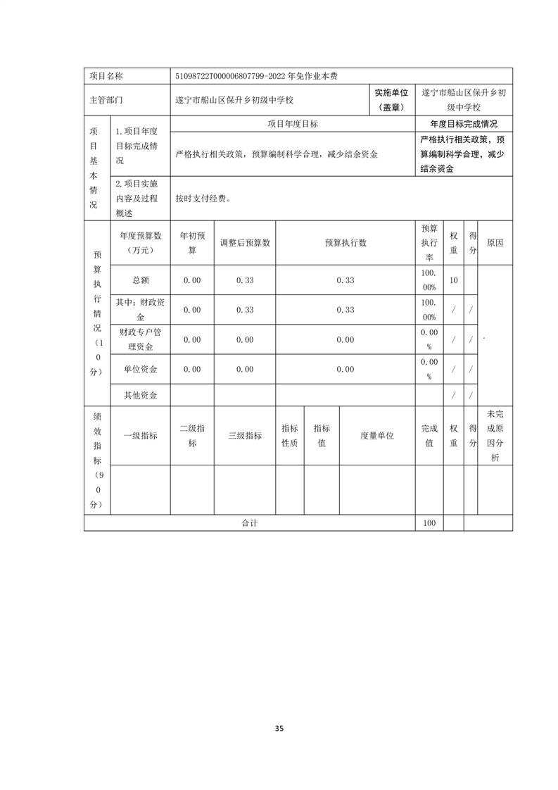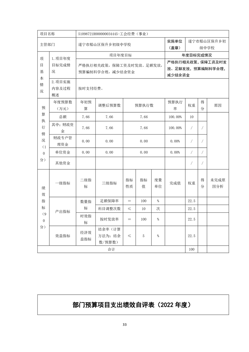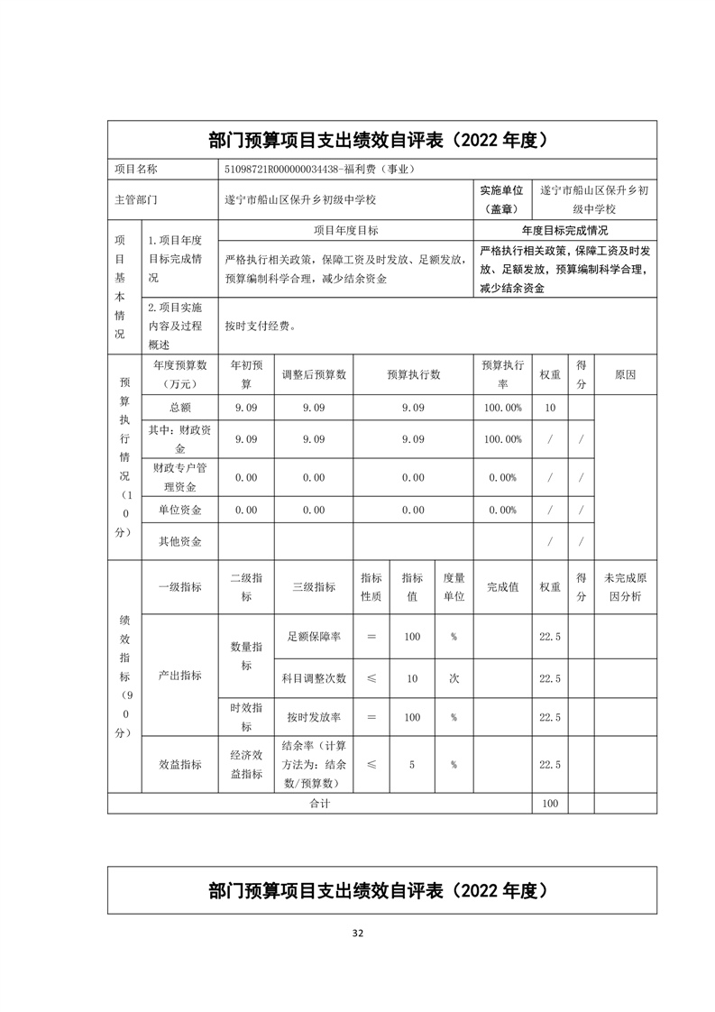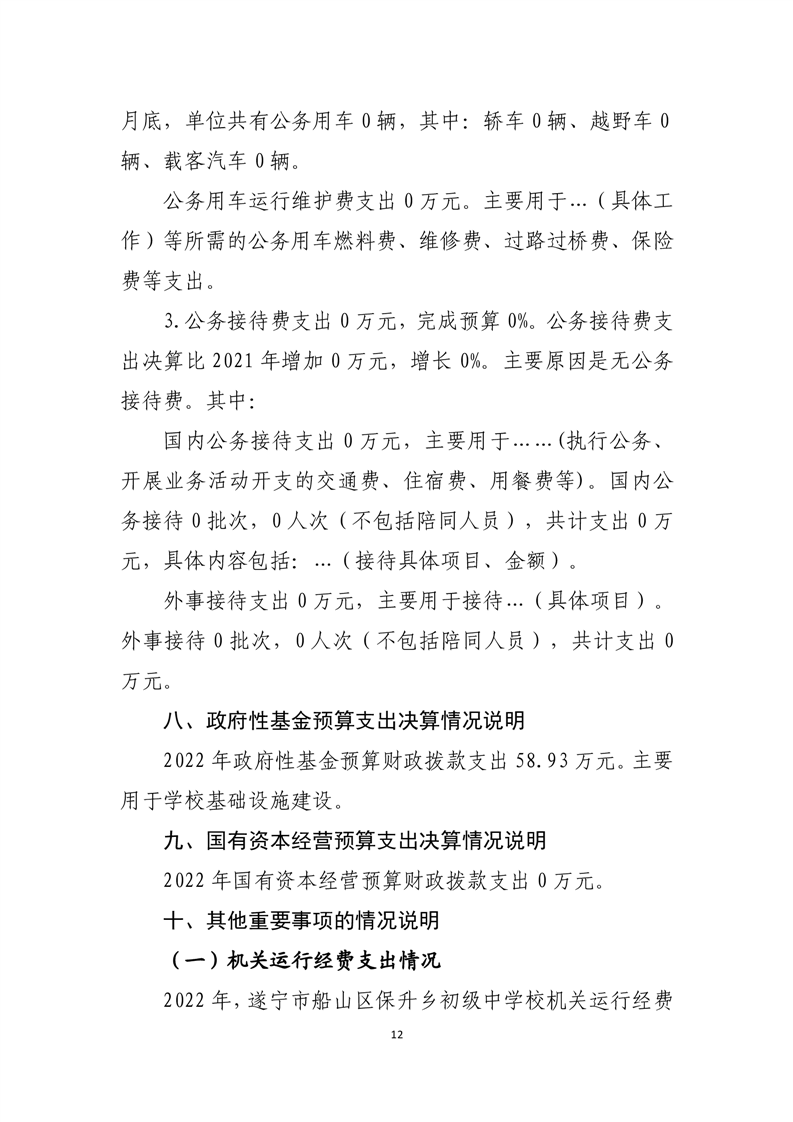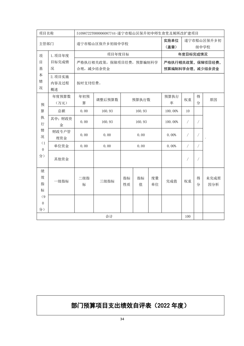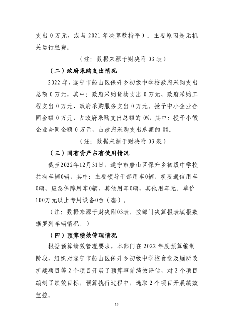 2022年度遂宁市船山区保升乡初级中学校决算