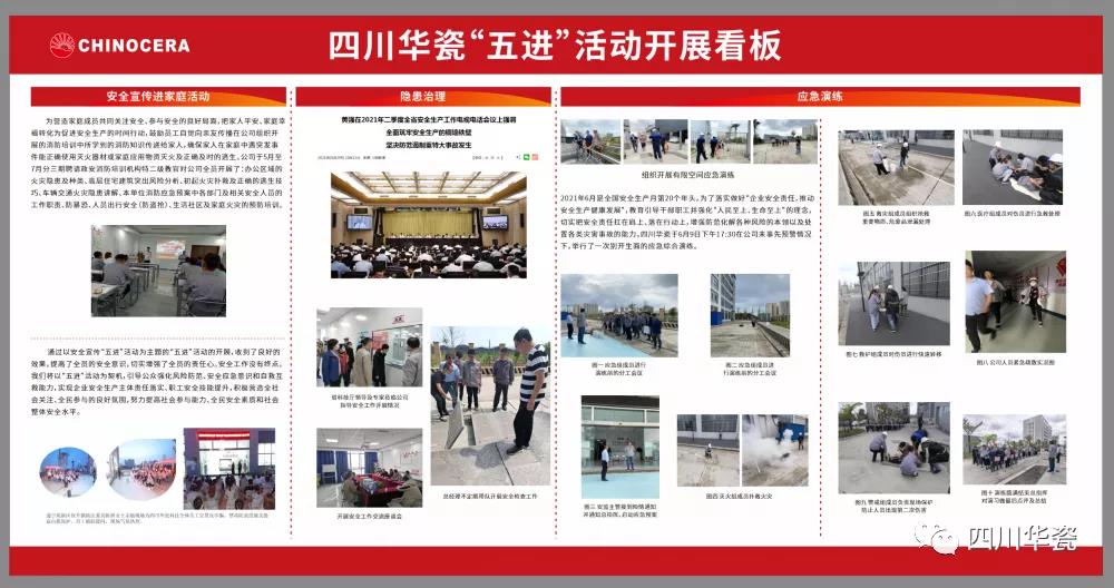 近日,四川华瓷科技有限公司通过相关部门的审核评定,荣获遂宁市安全宣传“五进”示范点称号。