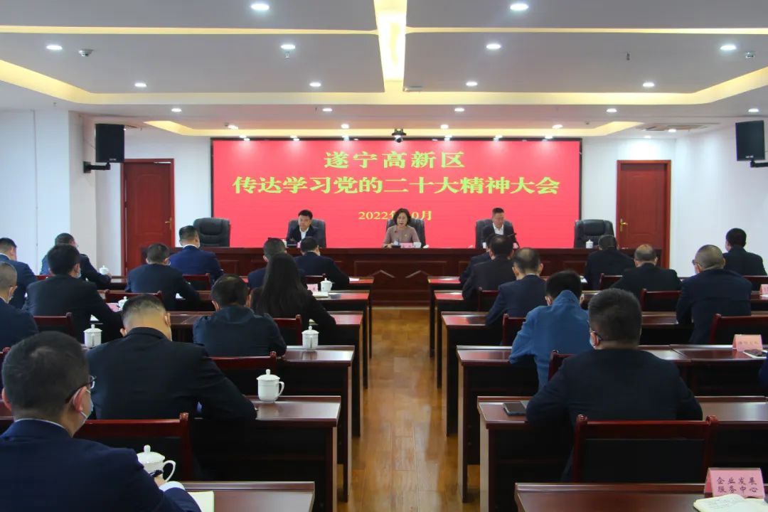 10月26日,遂宁高新区召开会议,传达学习党的二十大精神和省、市传达学习党的二十大精神,研究园区贯彻落实意见。市委常委、宣传部部长,市总工会主席,遂宁高新区党工委书记涂虹出席会议并讲话。遂宁高新区党工委副书记、管委会主任唐统主持会议。园区领导李戈亮、王海军、陈建明、金欣、赵武军、谭勇、庞博参加会议。