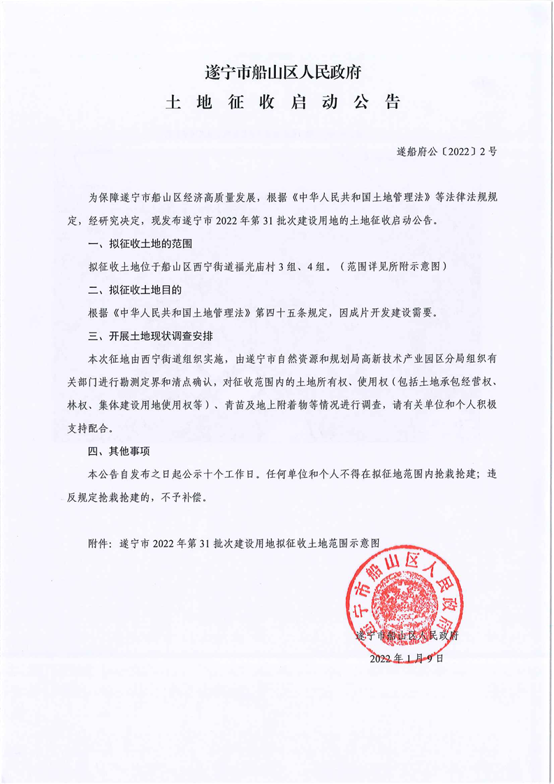 遂宁市船山区人民政府土地征收启动公告(2022年第31批次)