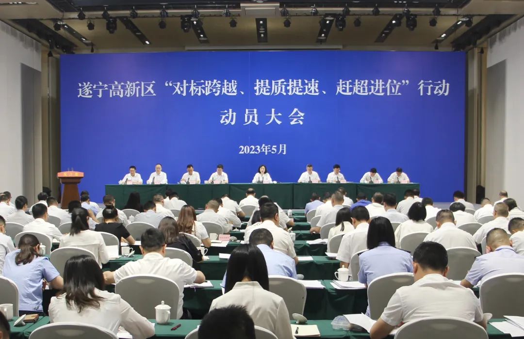 5月15日,遂宁高新区“对标跨越、提质提速、赶超进位”行动动员大会召开。市委常委、宣传部部长,市总工会主席,遂宁高新区党工委书记涂虹出席会议并讲话,强调要迅速贯彻全市会议精神,凝聚起创新实干加快推动园区高质量发展的高度共识、形成必须全力抢位争位的最强共鸣、点燃乘风破浪扬帆起航的澎湃激情,在自我检视中摸清问题短板、在审时度势中抓准发展机遇、在逆势而上中书写精彩篇章。遂宁高新区党工委副书记、管委会主任唐统主持会议。园区领导李戈亮、王海军、黄俊宁、金欣、谭勇、冉茂连、庞博、徐毅参加会议。